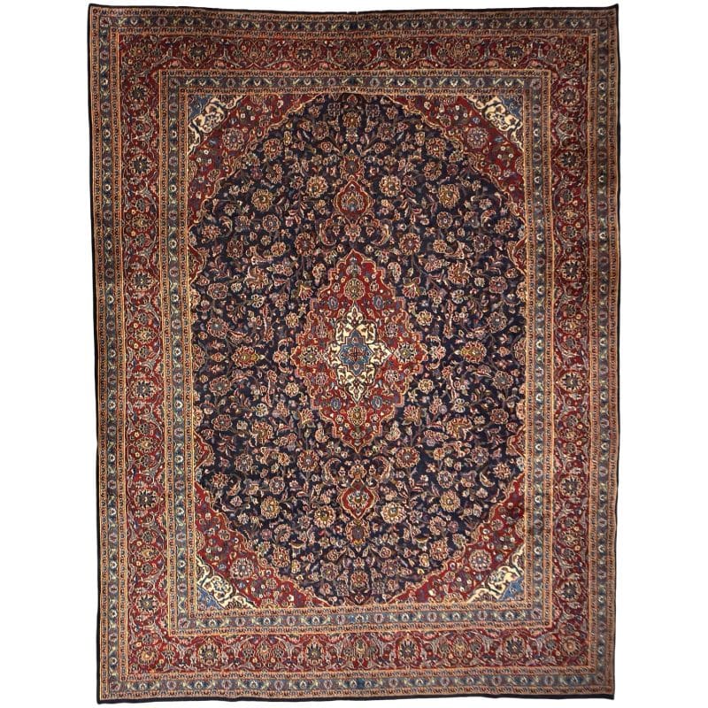 402 x 305cm Persian Navy Kashmar Hand Knotted Wool Rug