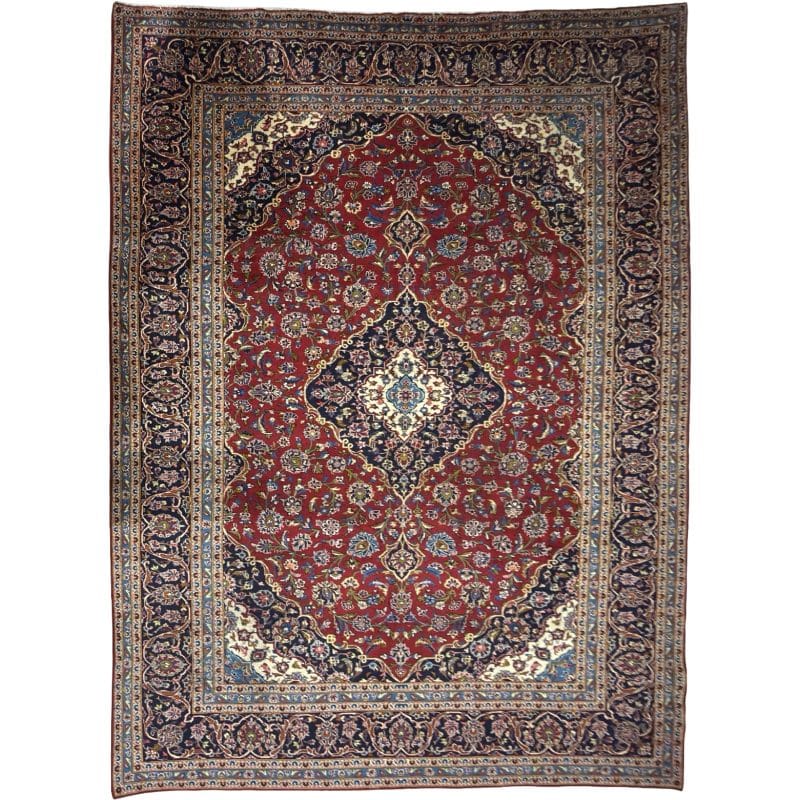 430 x 305cm Large Vintage Hand-Knotted Persian Kashan Wool Rug