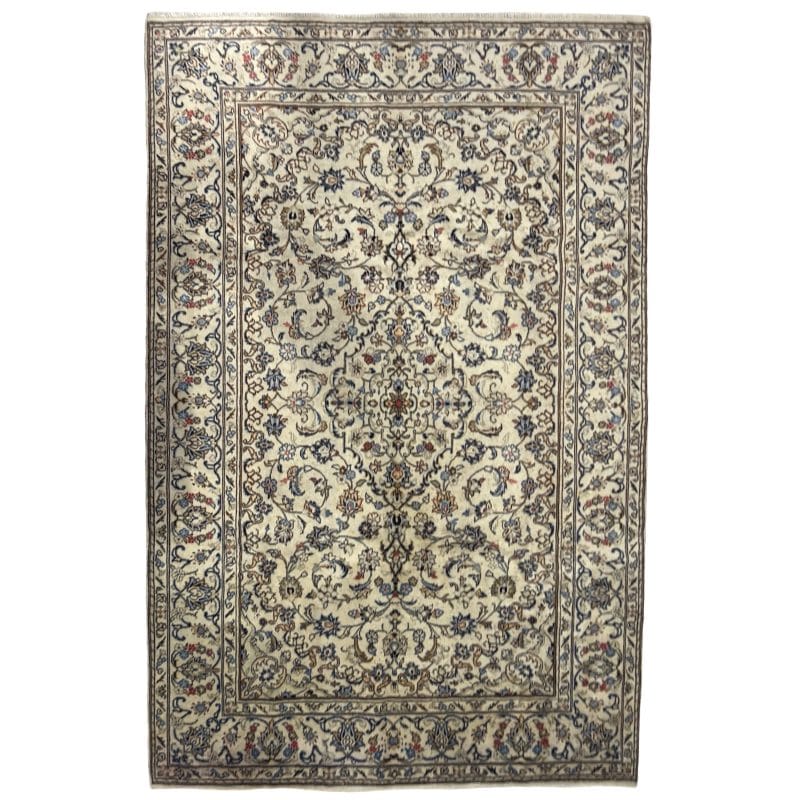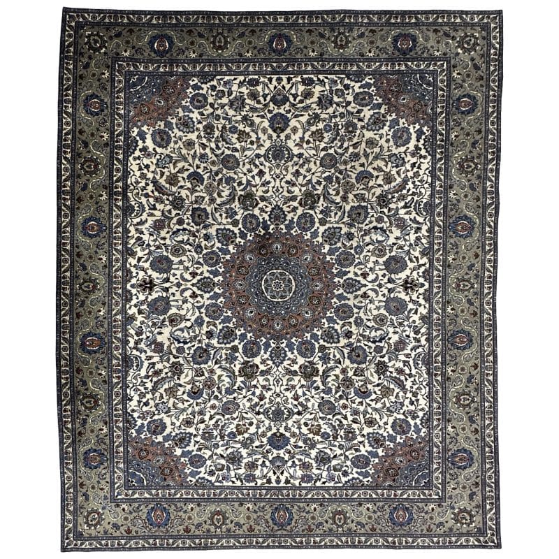 406 x 300cm Hand-Knotted Persian Kashan Rug – Ivory & Blue Tones