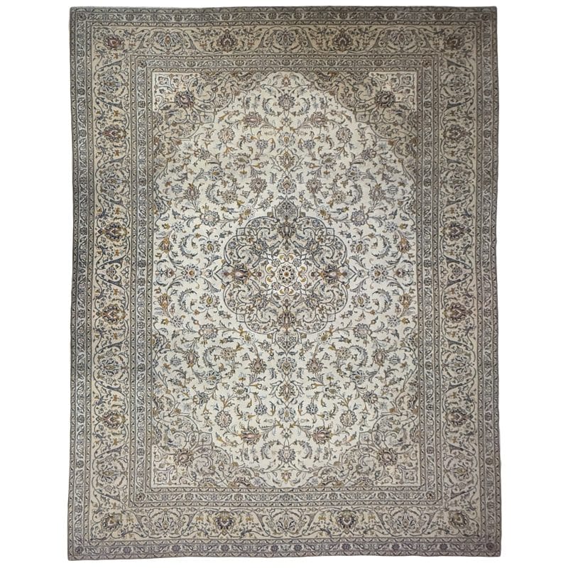 387 x 245cm Hand Knotted Ivory Kashan Persian Rug
