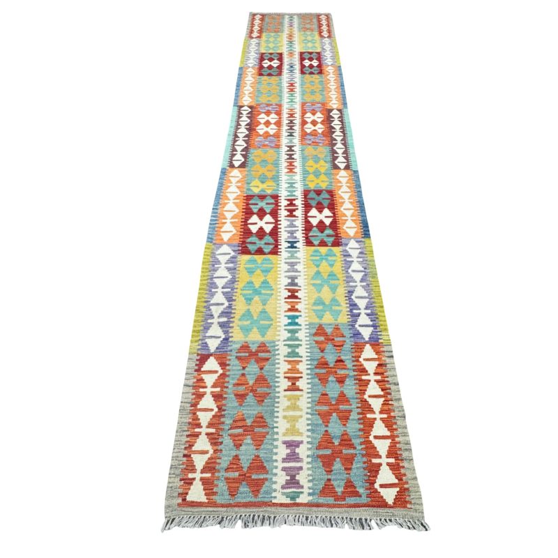 395cm x 85cm Hand-Woven Afghan Kilim – Runner Rug