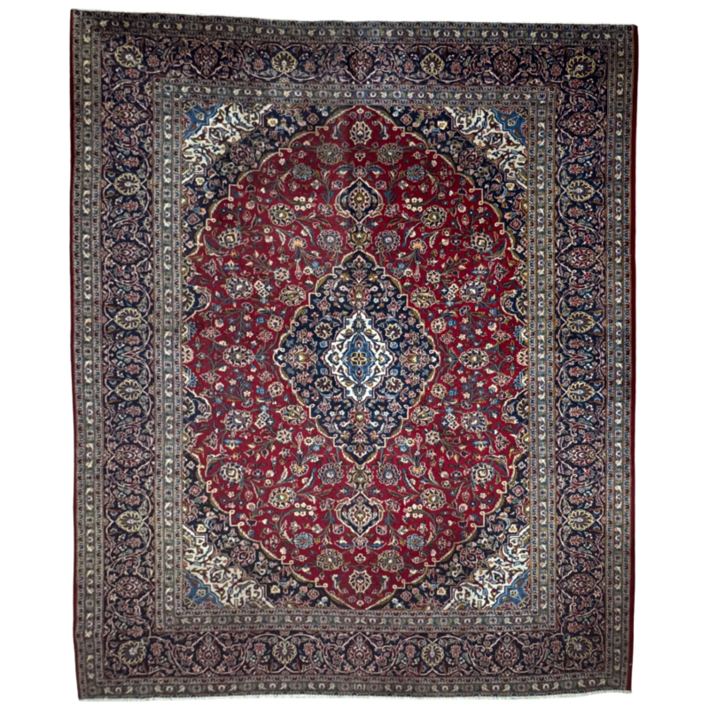 412 x 314cm Hand Knotted Persian Medallion Kashan Navy Rug