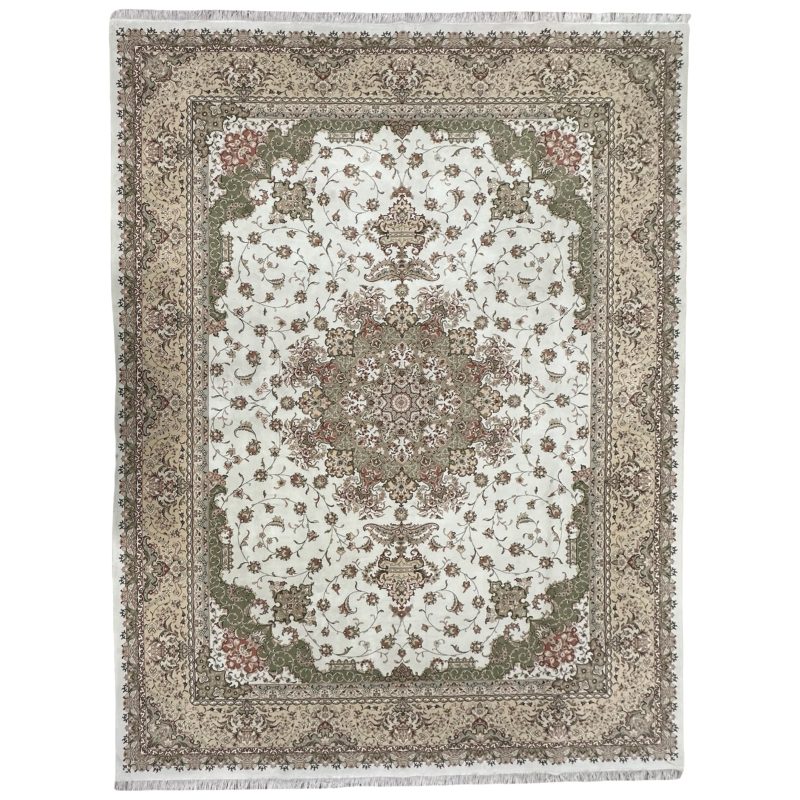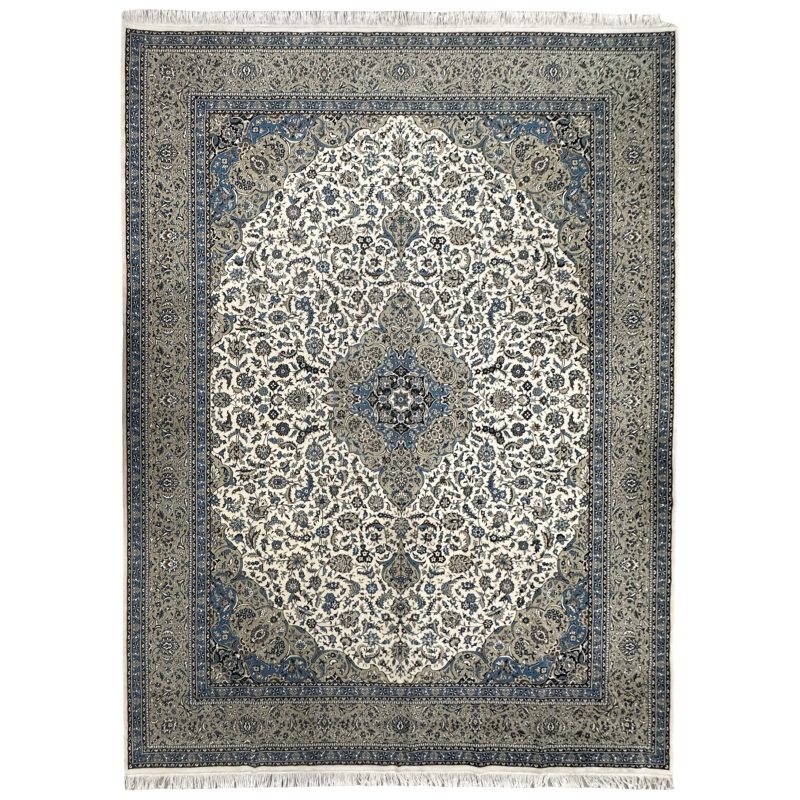 389 x 277cm Hand Knotted Floral Persian Kashan Cream Wool Rug