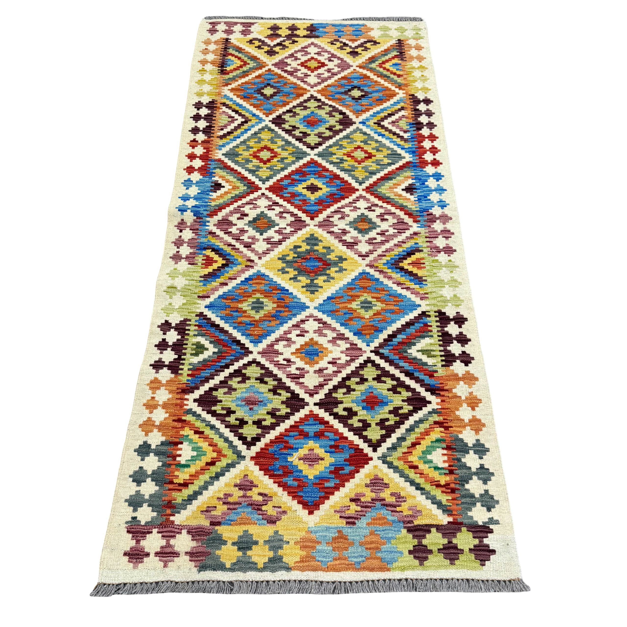 218 x 71cm Hand-Woven Afghan Kilim Runner Rug