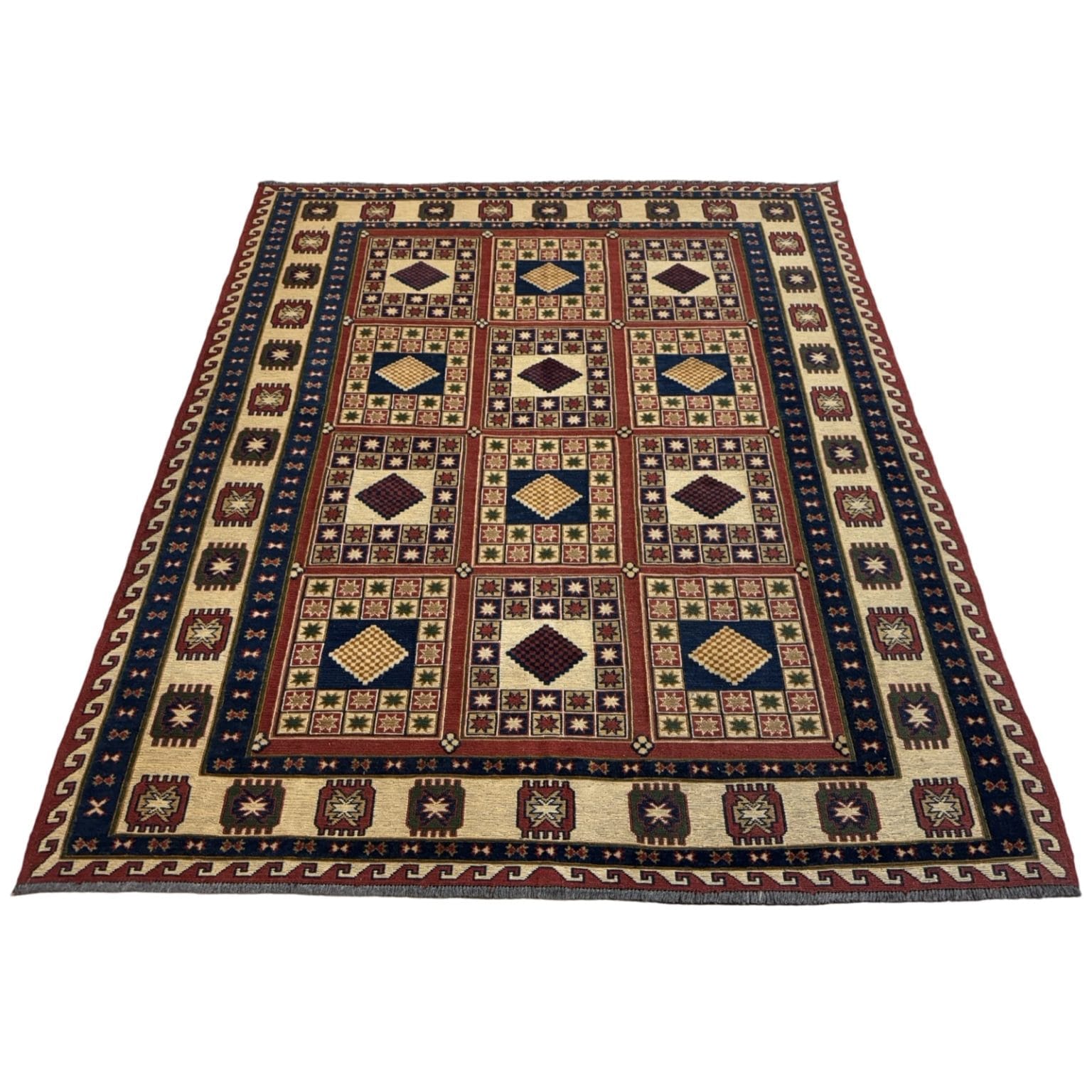 190 x 160cm Hand-Woven Tribal Kilim Somak – Wool Rug