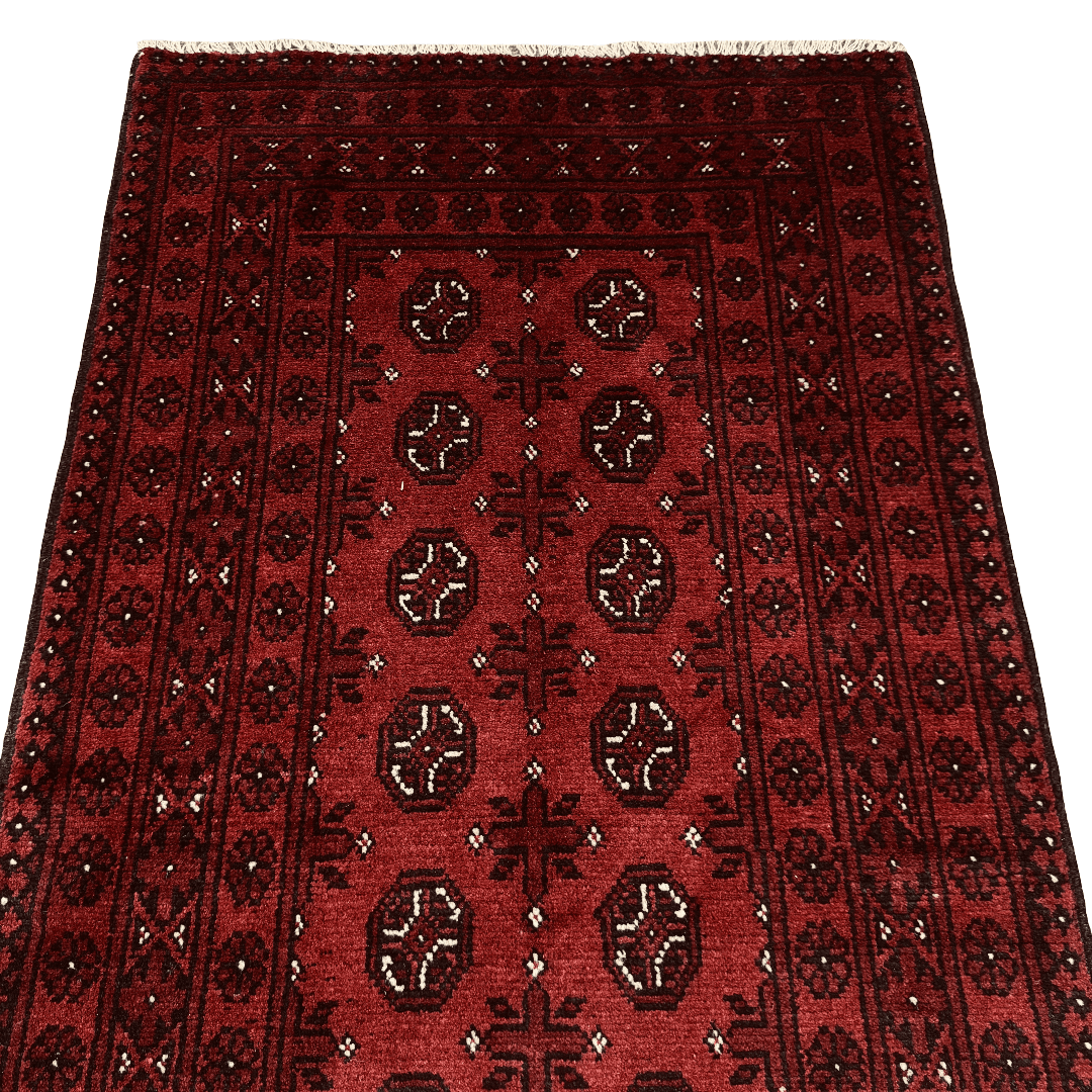 198cm x 100cm Hand Woven Red Afghan Akche Rug