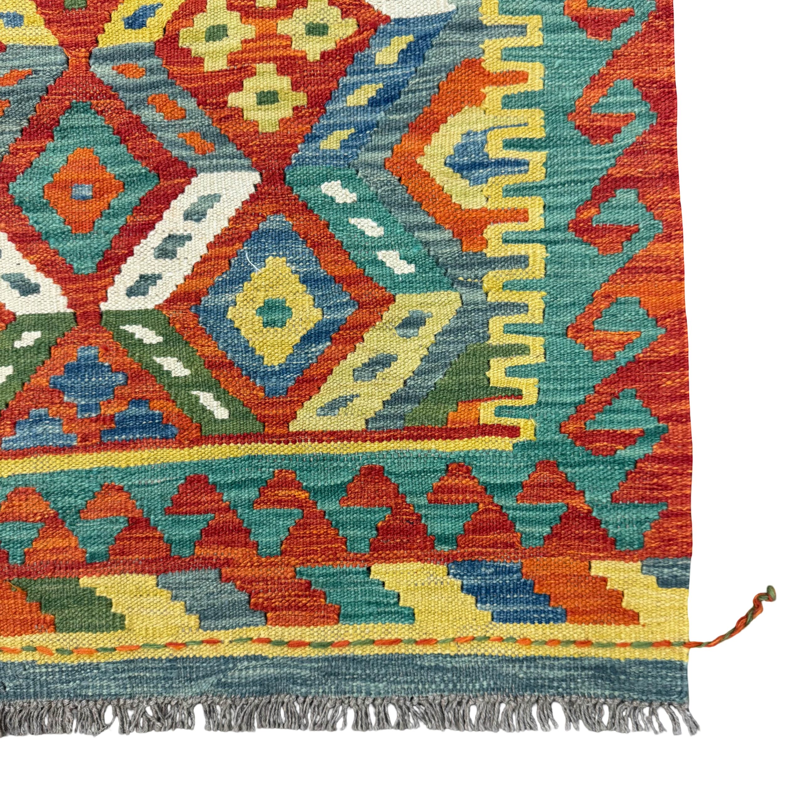 198cm x 91cm Hand-Woven Afghan Kilim – Runner Rug