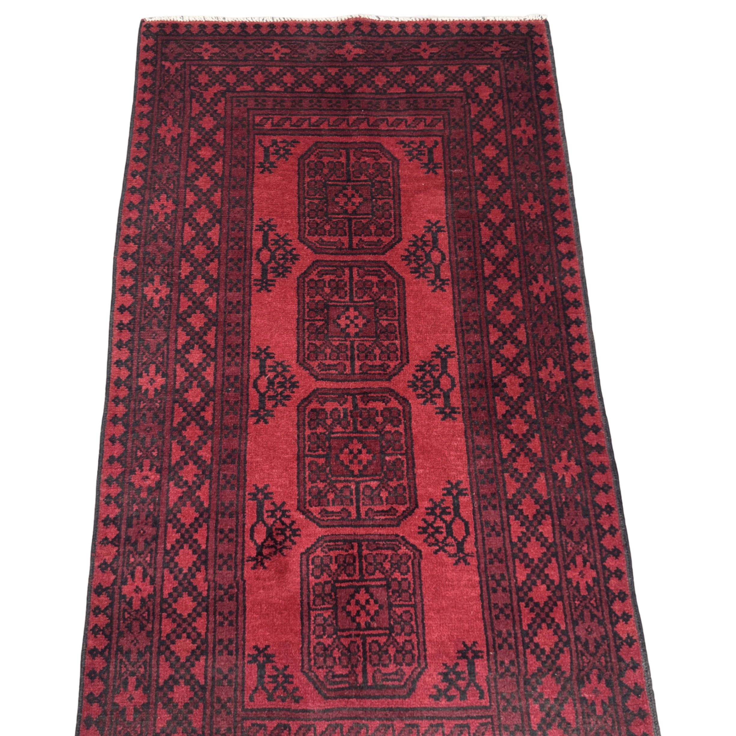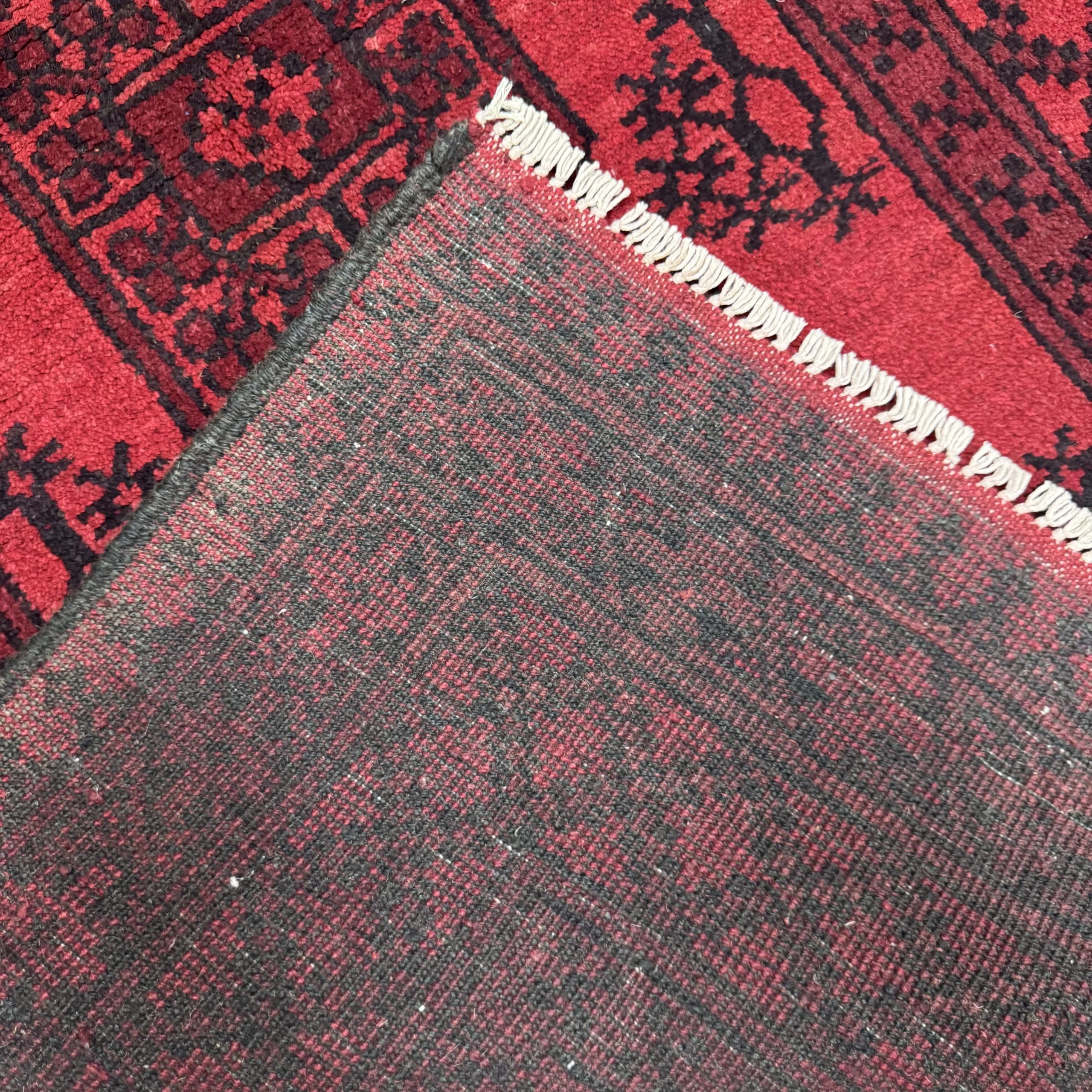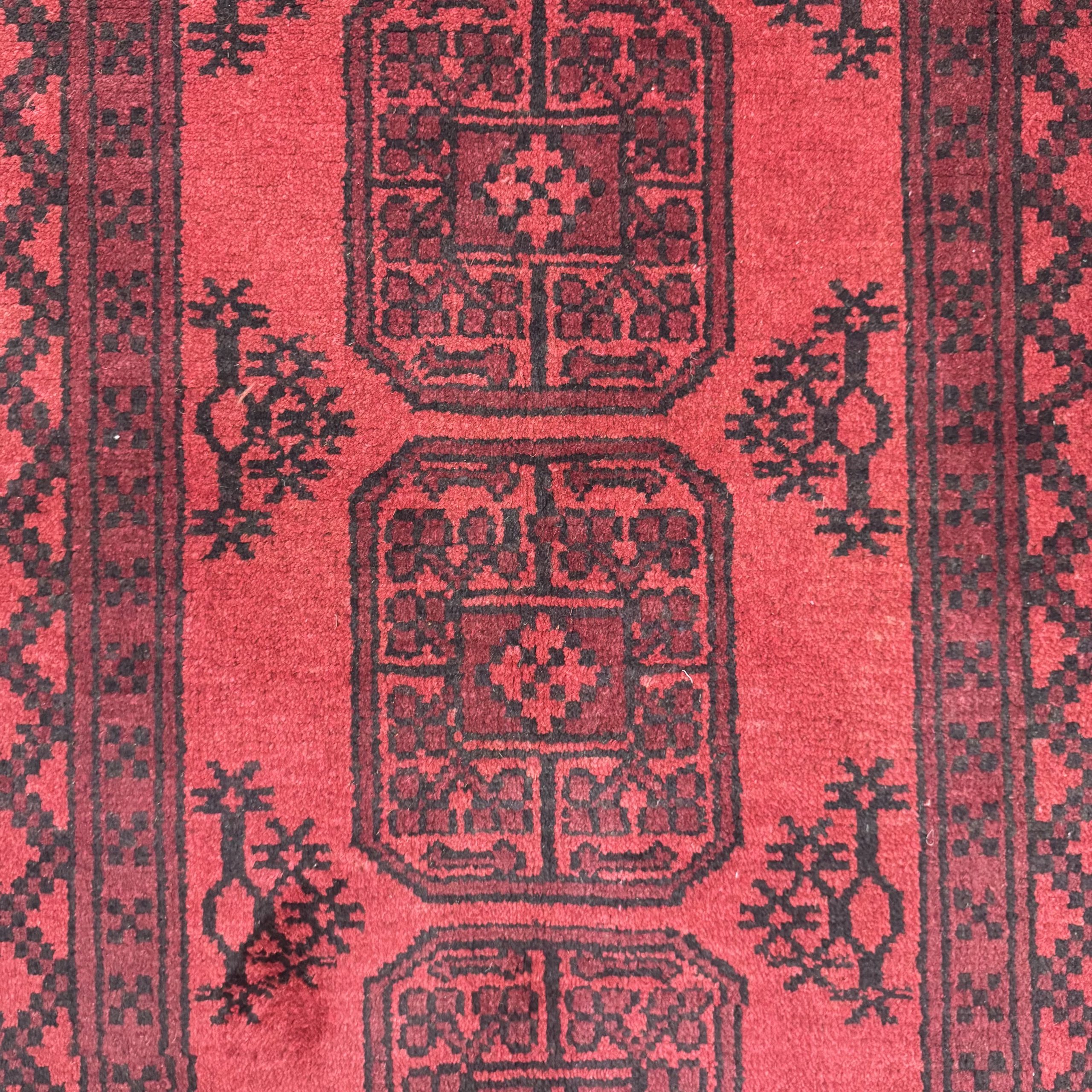 195cm x 97cm Hand-Knotted Red Afghan Akche – Wool Rug