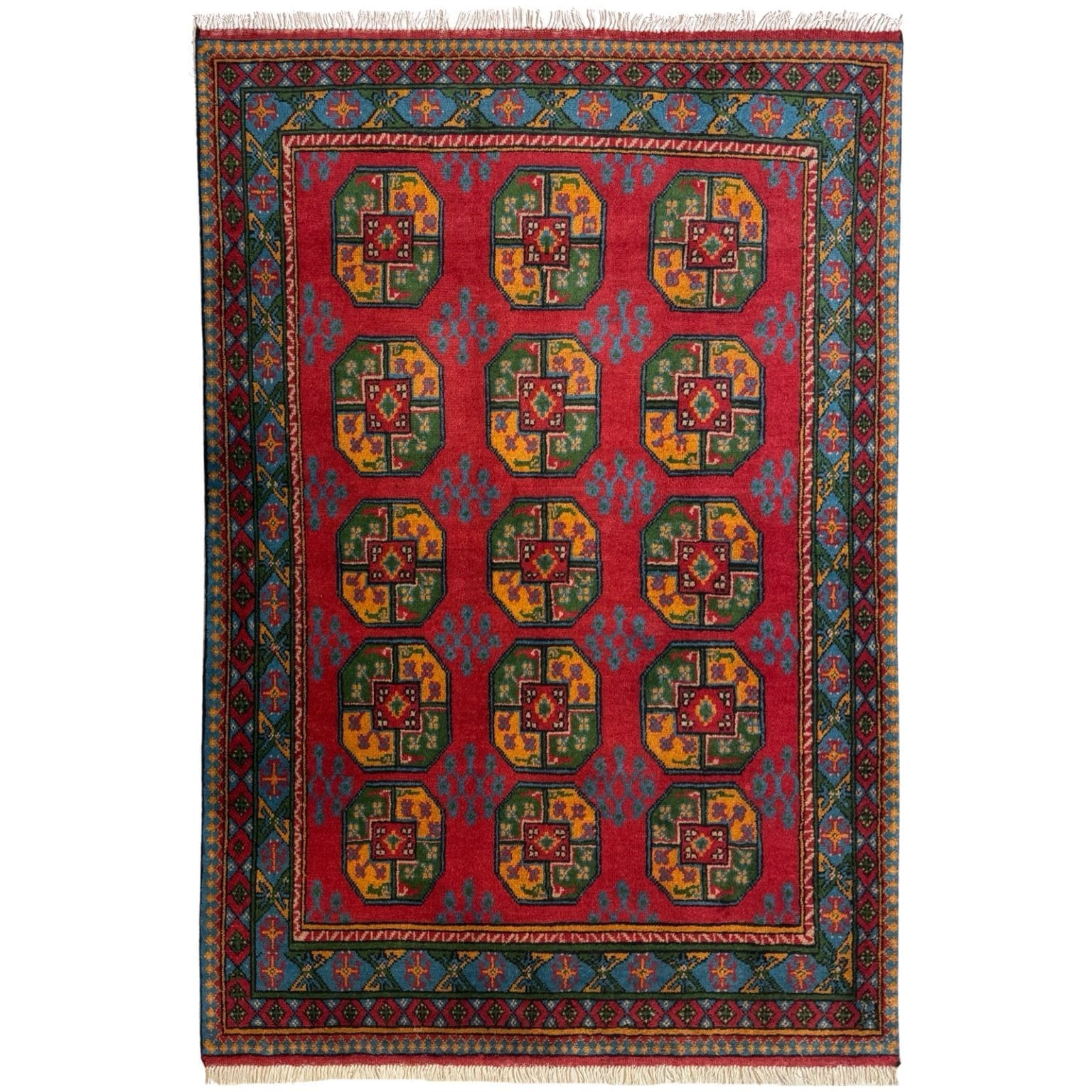 205 x 136cm Hand Knotted Red Afghan Akche Filpai – Wool Rug