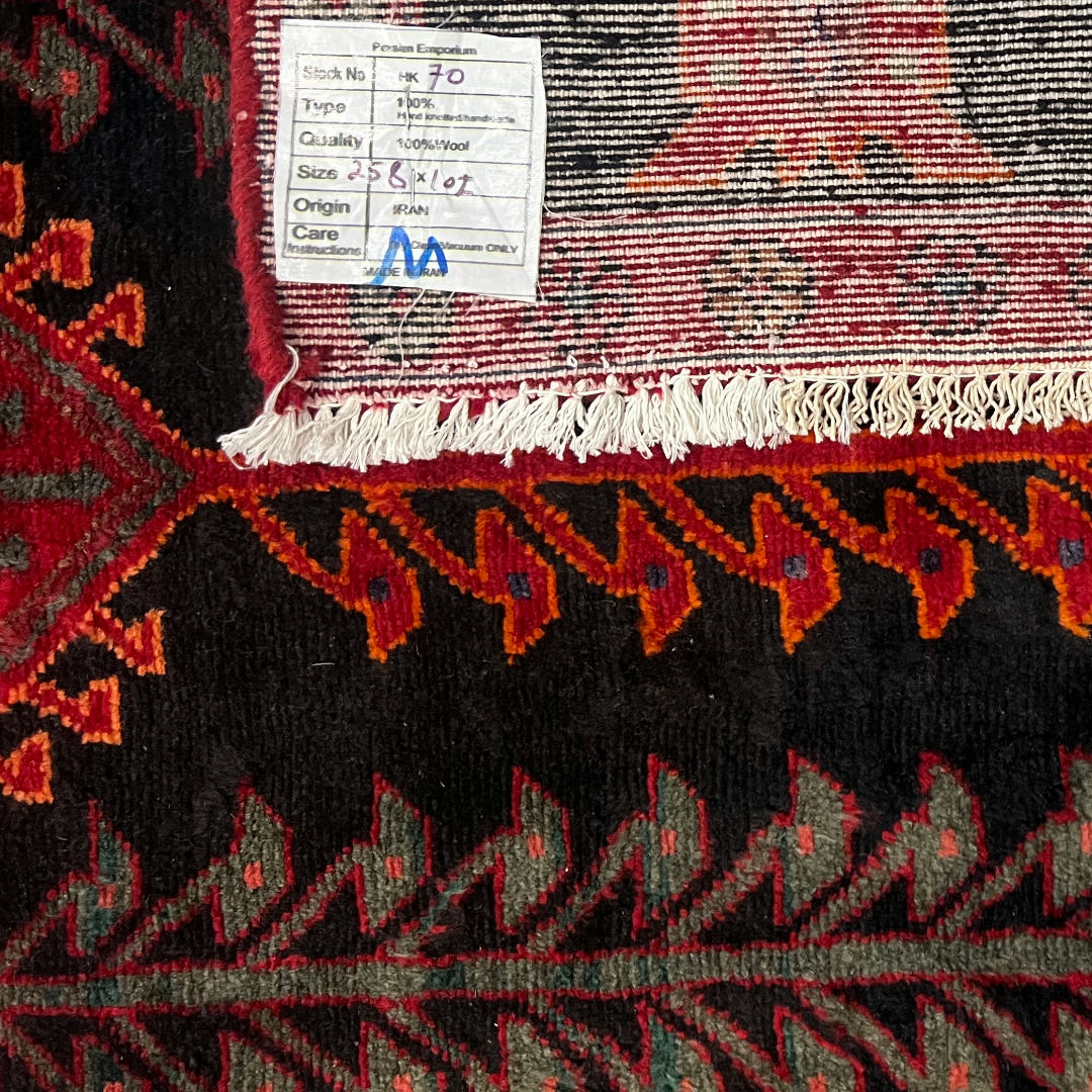 258 x 102cm Red & Black Tribal Hamadan Vintage Runner Rug