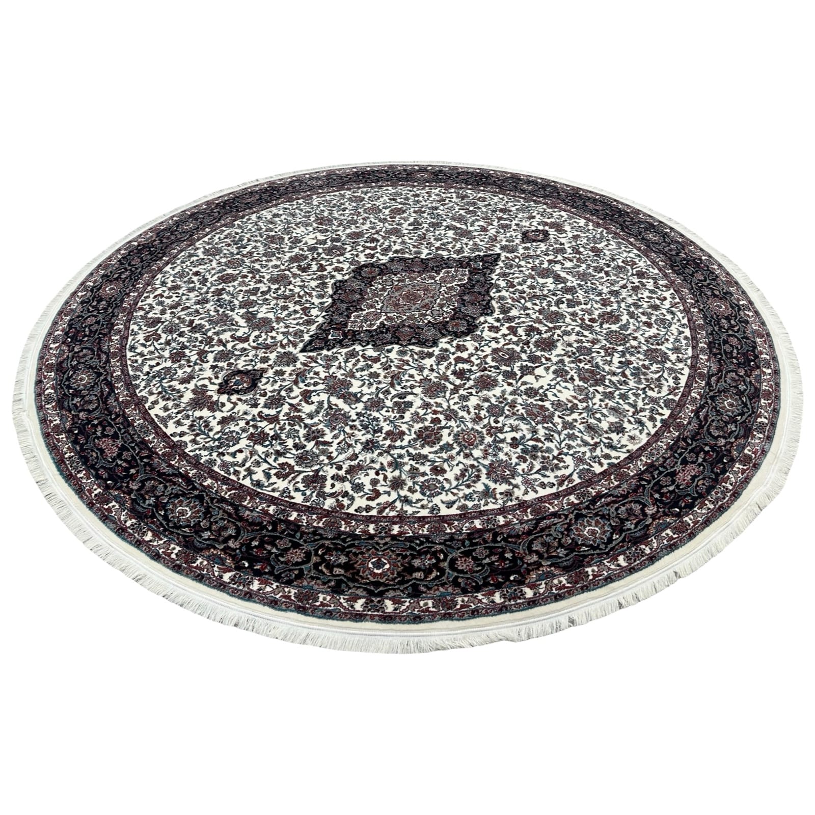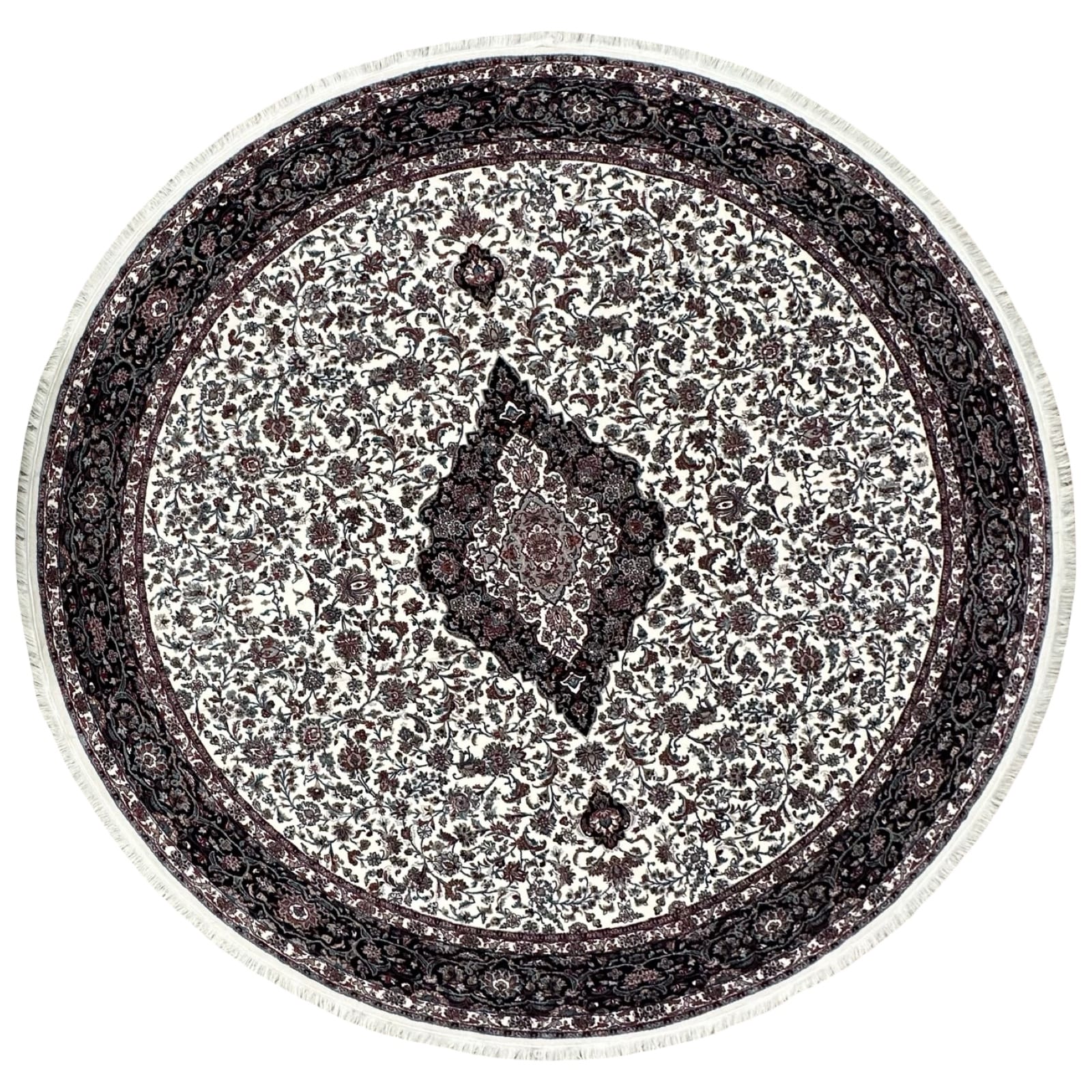 300 x 300cm Classic Persian Kashan Medallion Machine Made Cream Round Rug