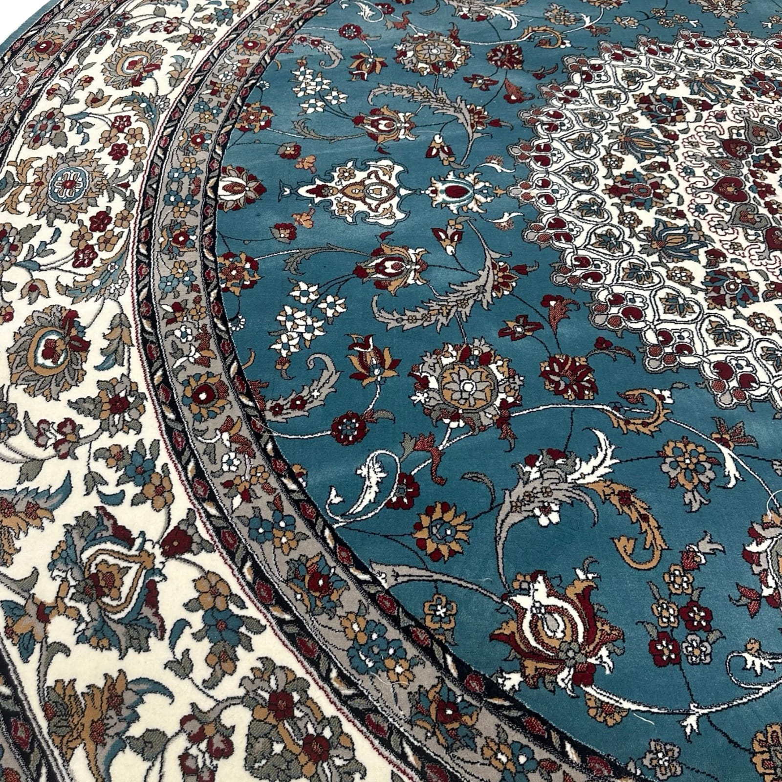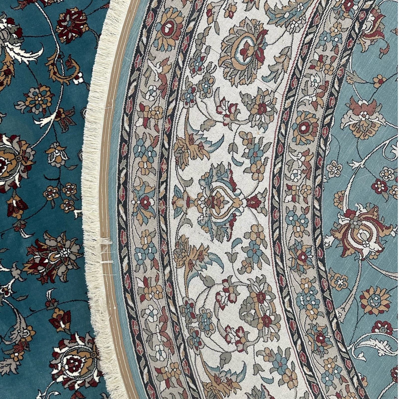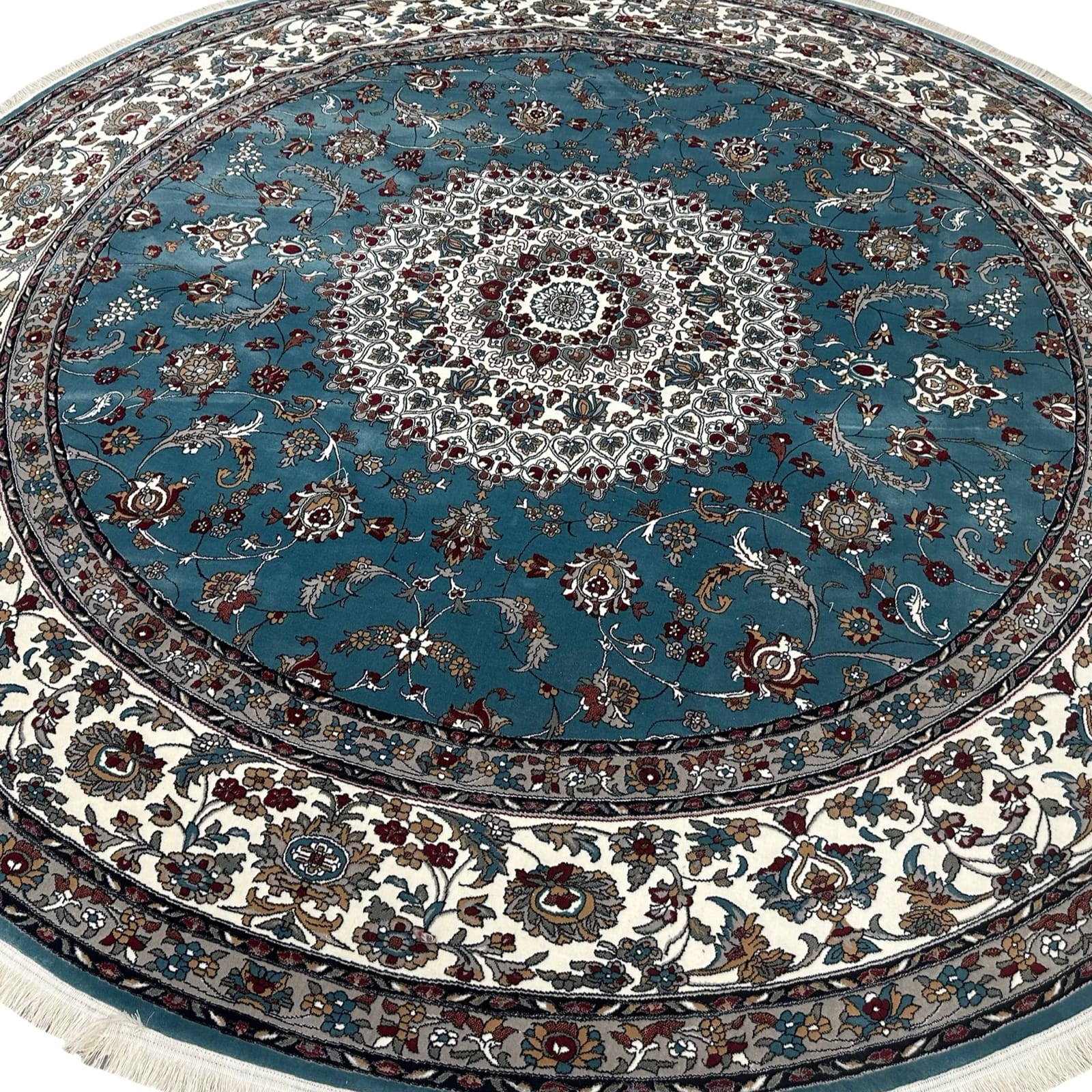 300 x 300cm Kashan Floral Medallion Machine Made Blue Round Rug
