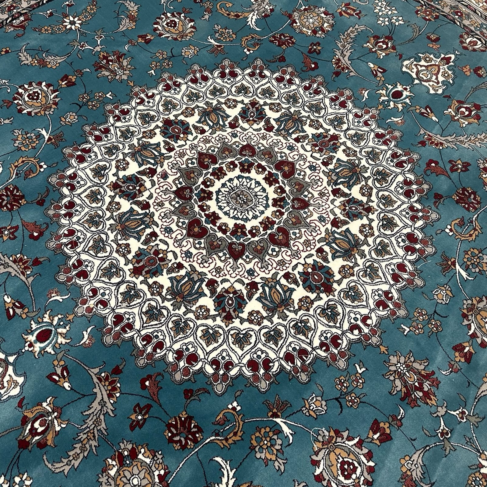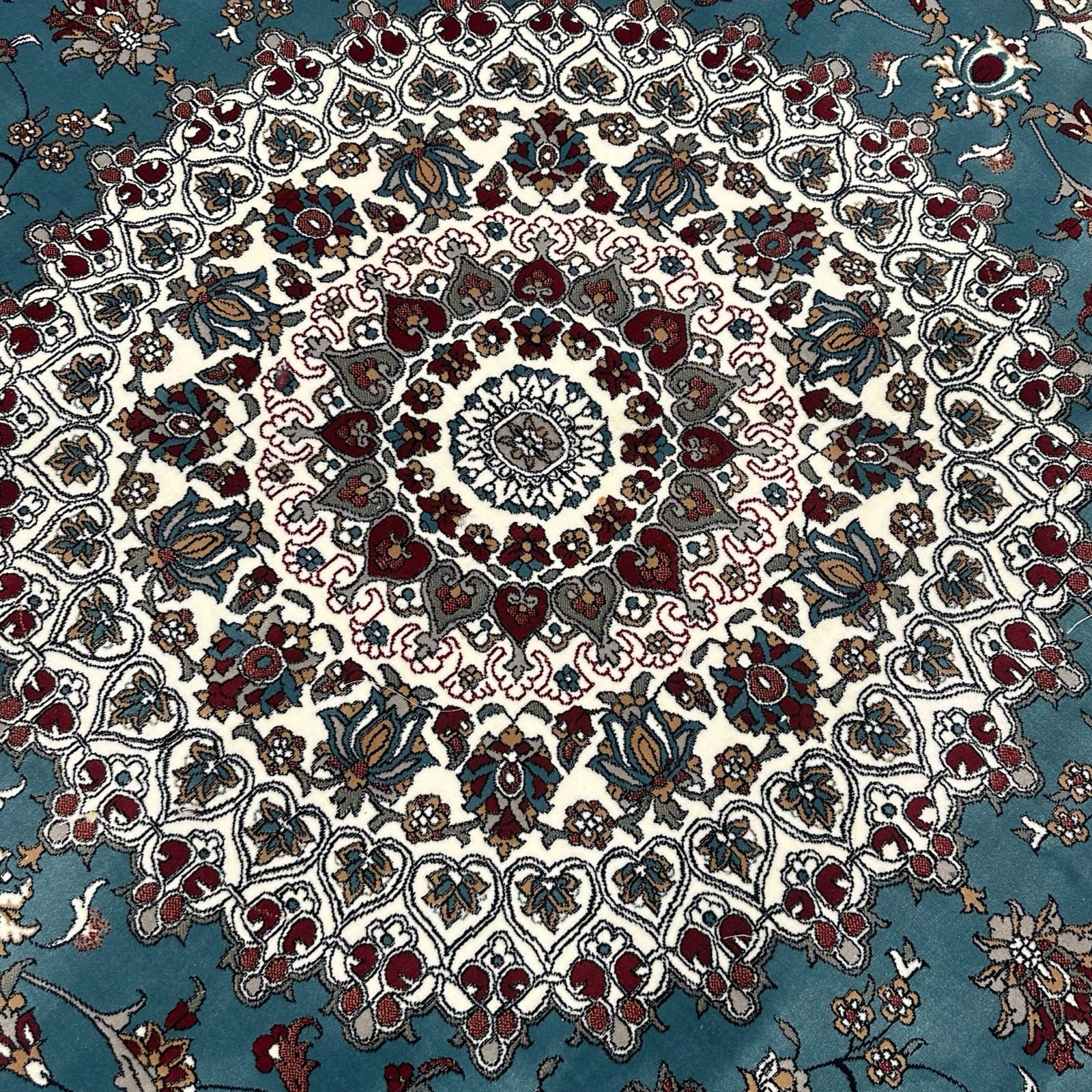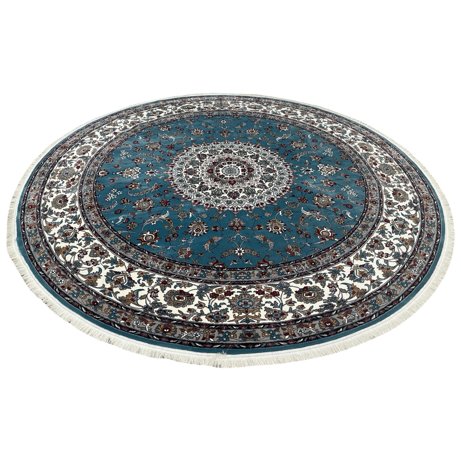 300 x 300cm Kashan Floral Medallion Machine Made Blue Round Rug