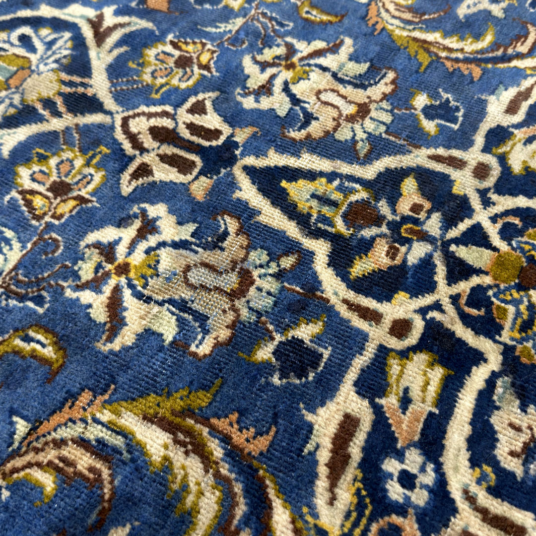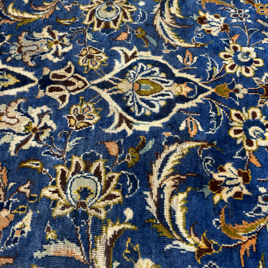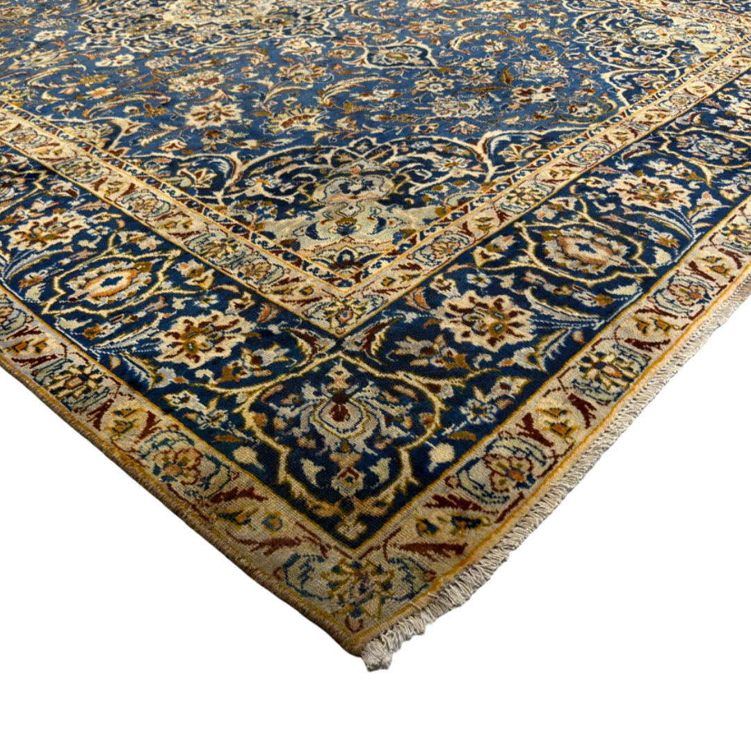 330 x 238cm Vintage Persian Hand Knotted Kashan Royal Blue Wool Rug