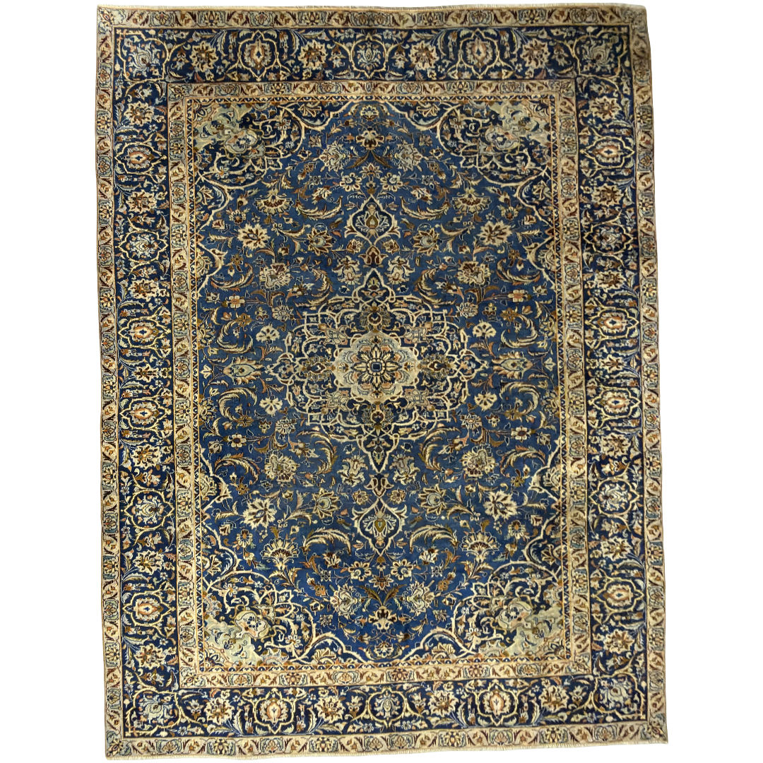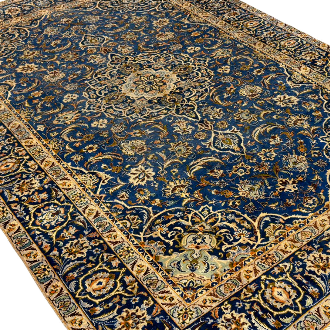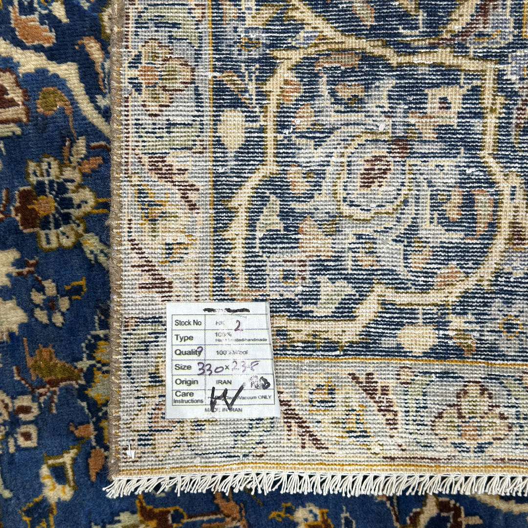 330 x 238cm Vintage Persian Hand Knotted Kashan Royal Blue Wool Rug