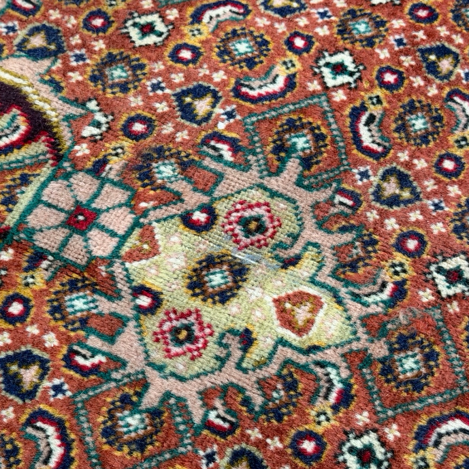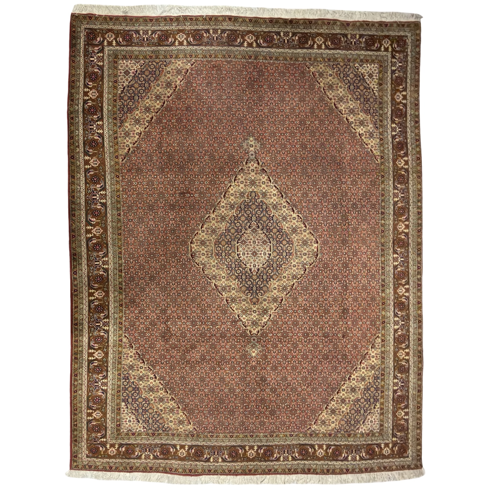 This rug is vintage, not antique, and likely dates from the 1960s to early 1980s. The fineness of the knots, the dense construction, and the gently mellowed colours give it an antique look, but its age places it firmly in the vintage category. Bijar rugs are known to age slowly, which is why this piece remains strong and well-defined.