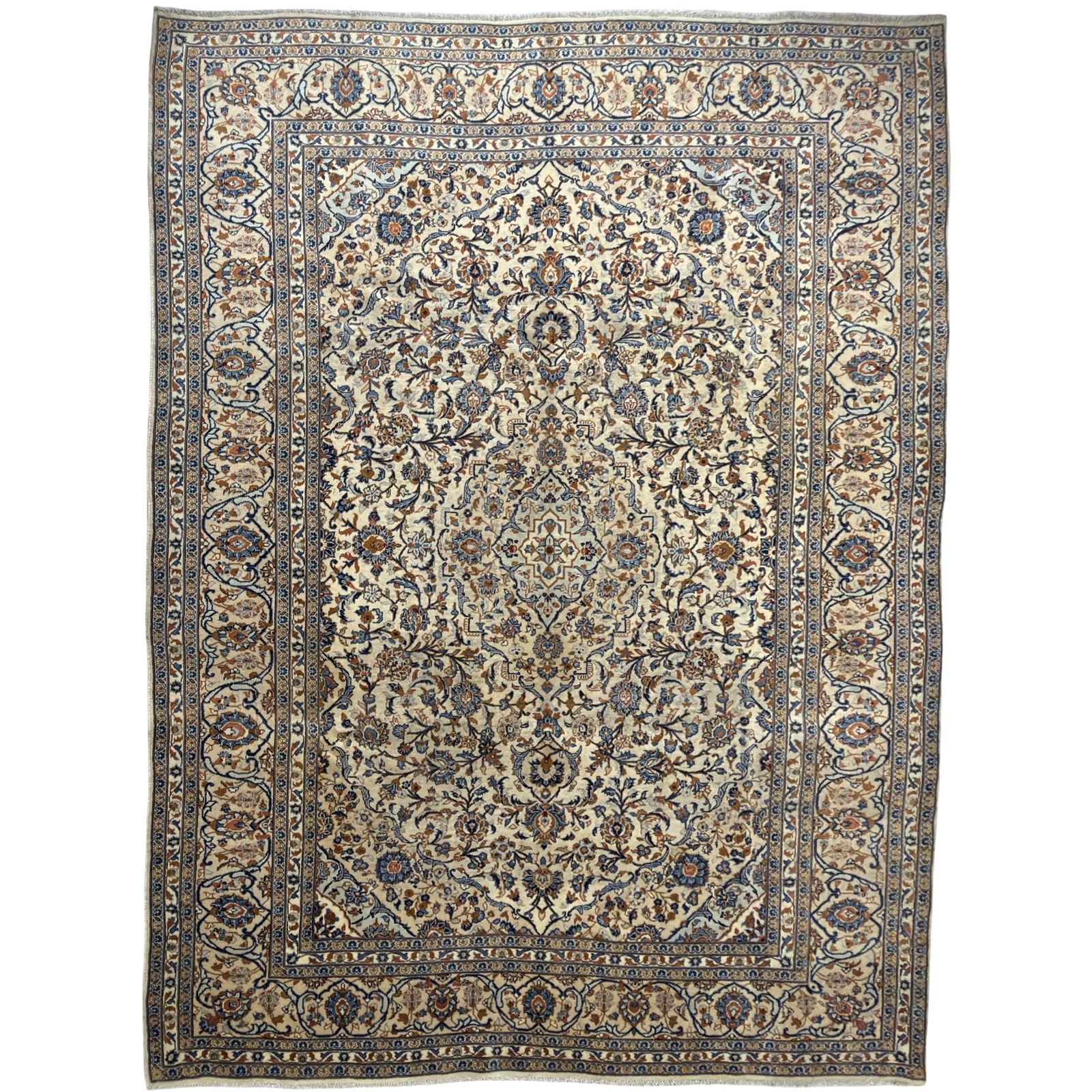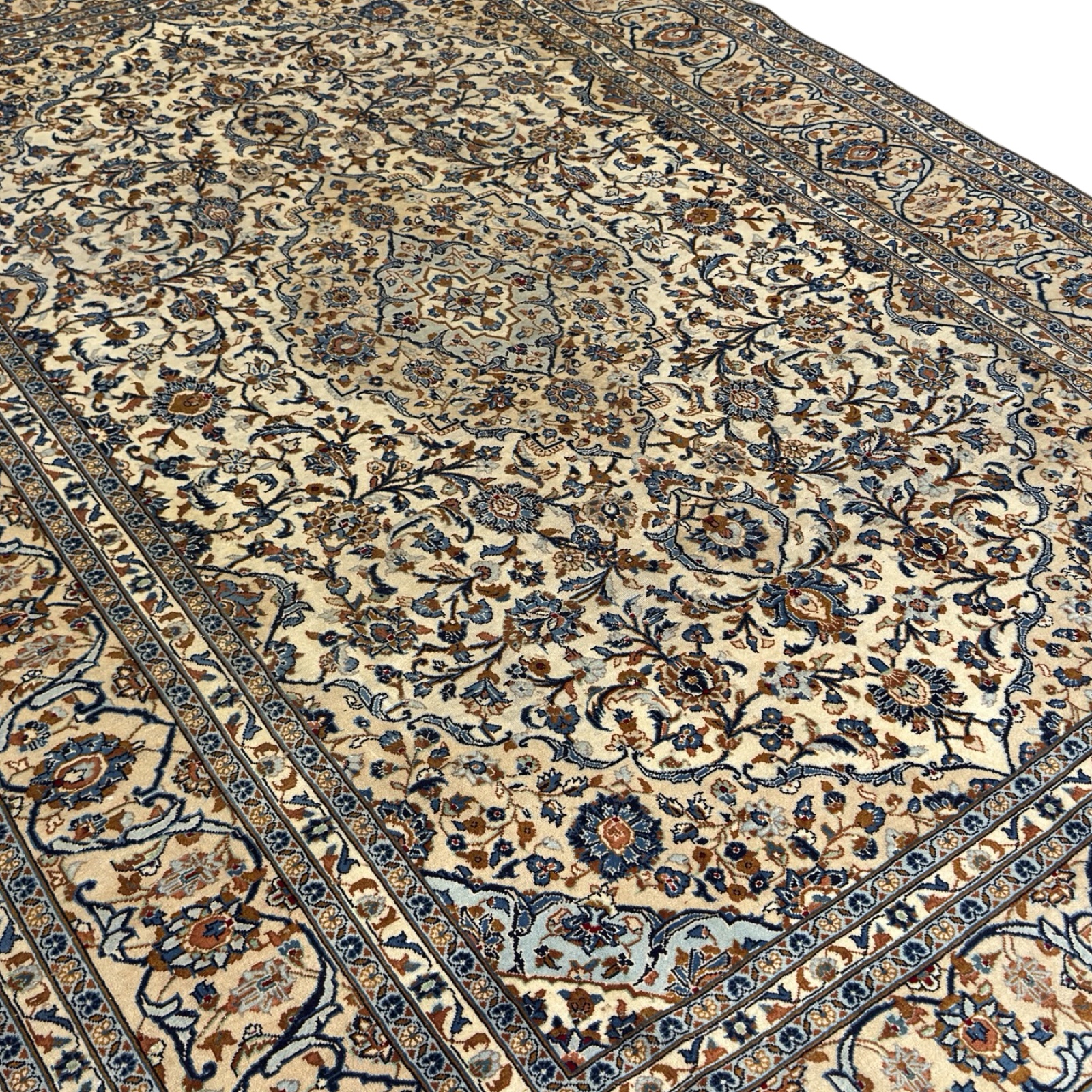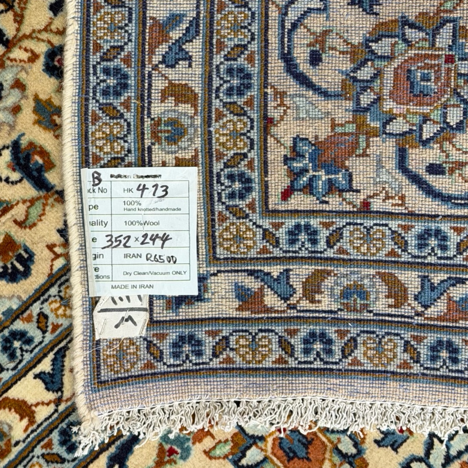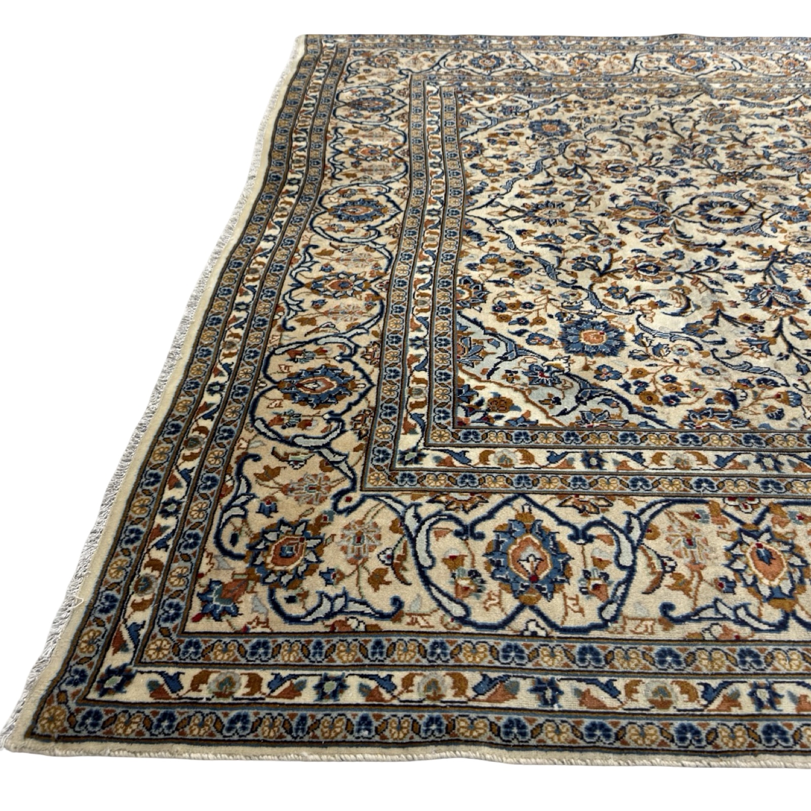 352 x 244cm Hand Knotted Vintage Floral Persian Kashan Cream Wool Rug