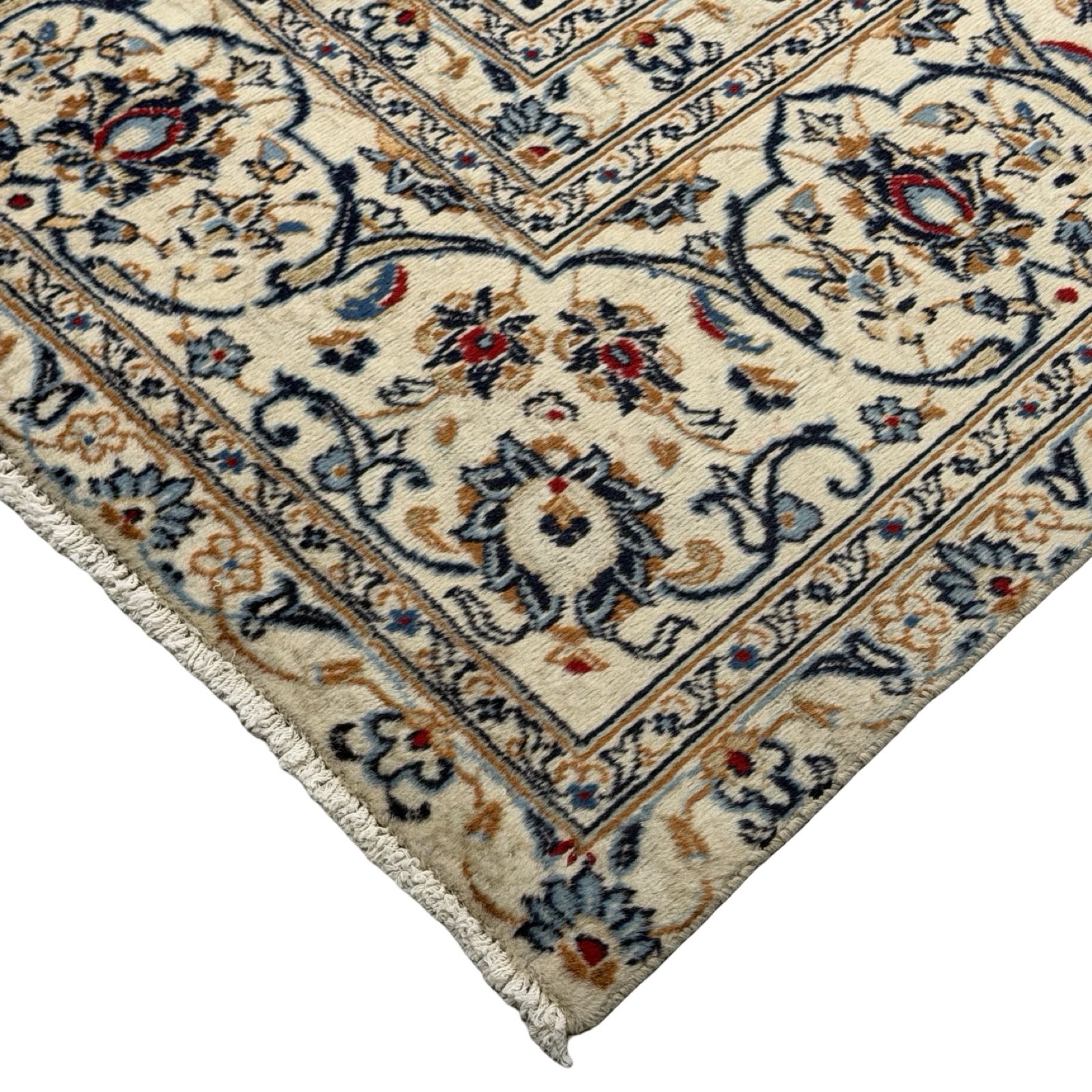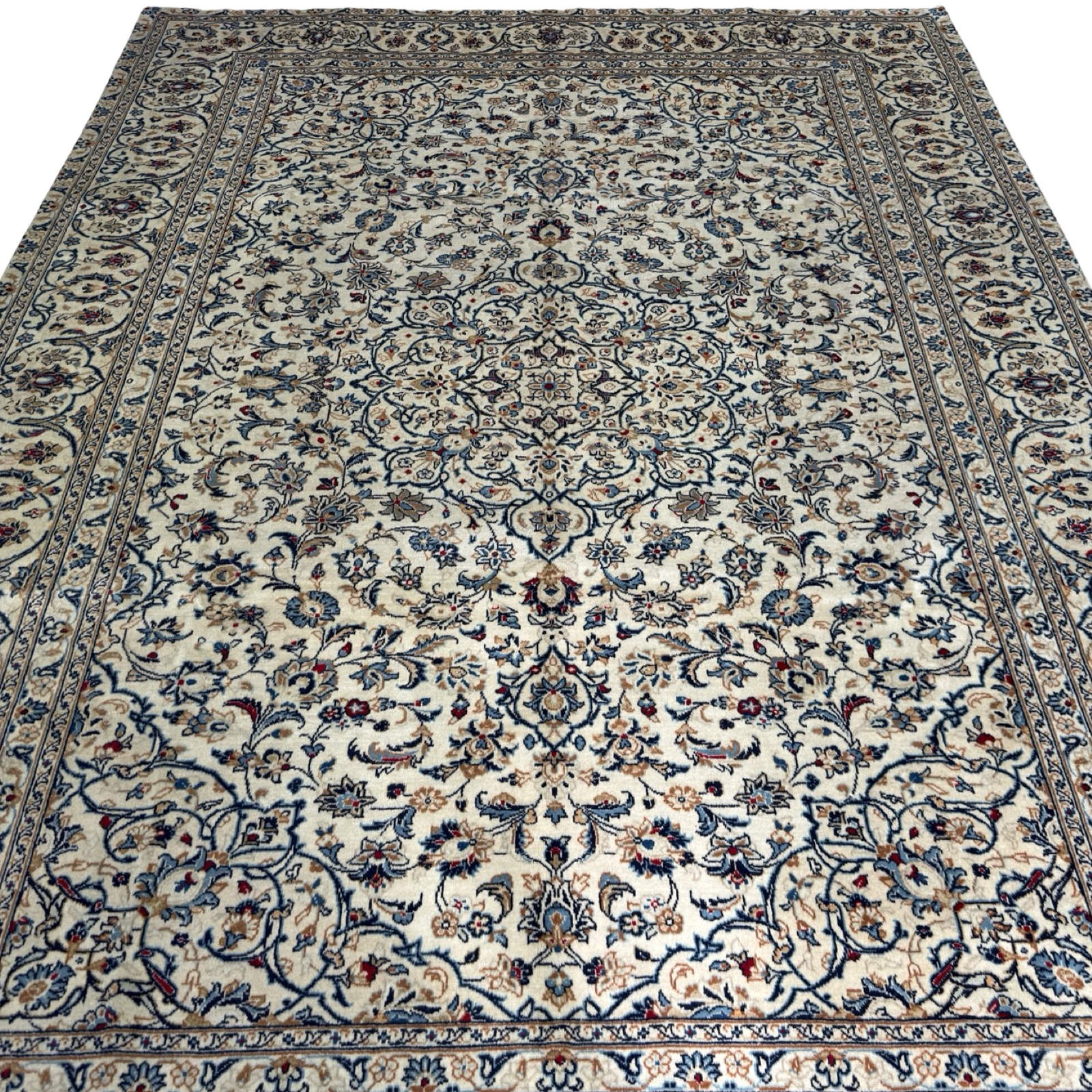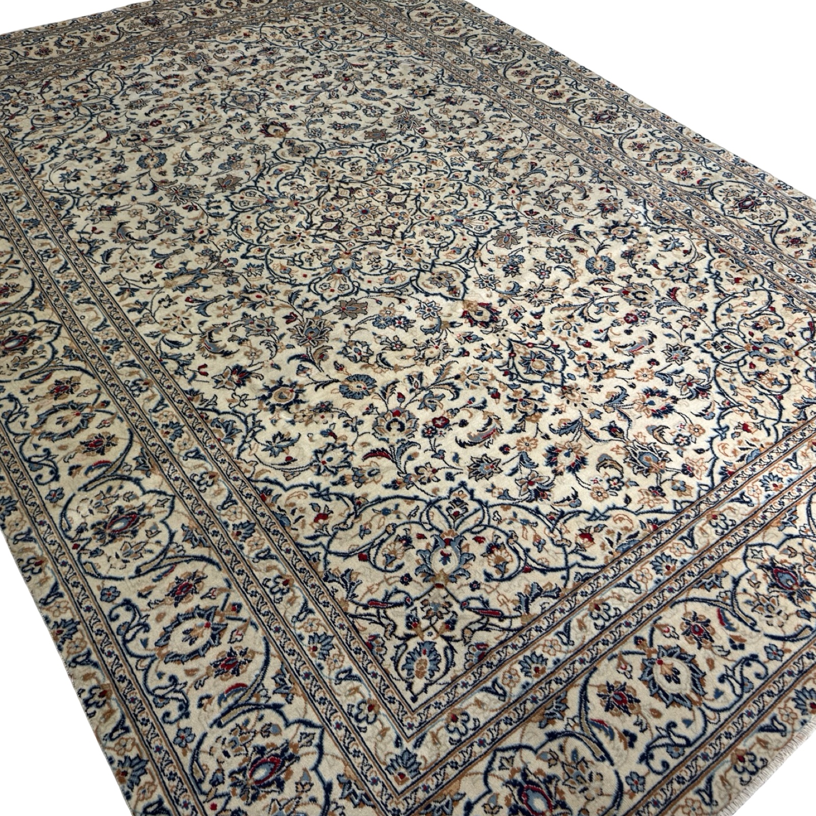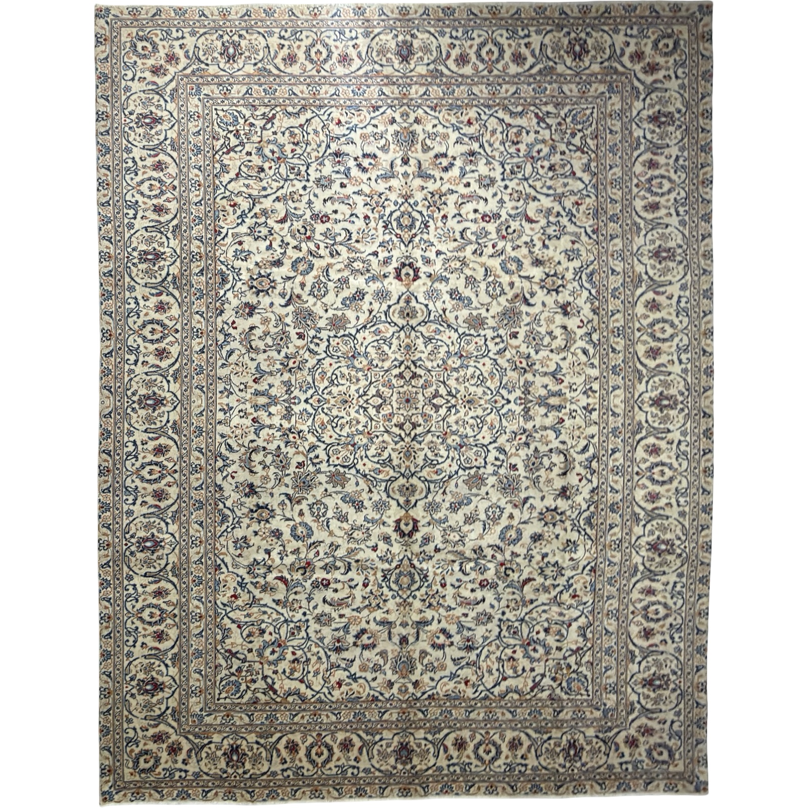 389 x 277cm Hand Knotted Floral Persian Kashan Cream Wool Rug