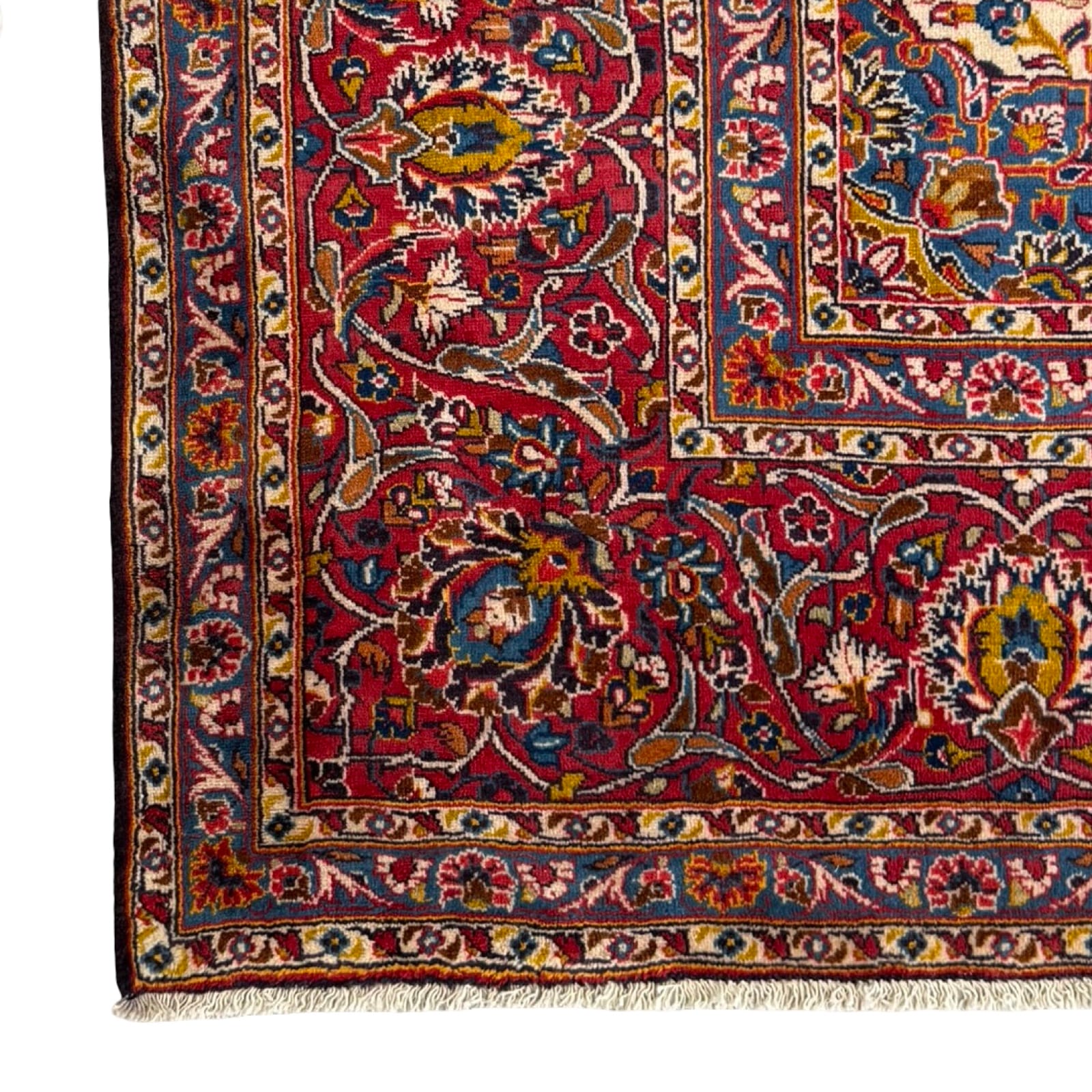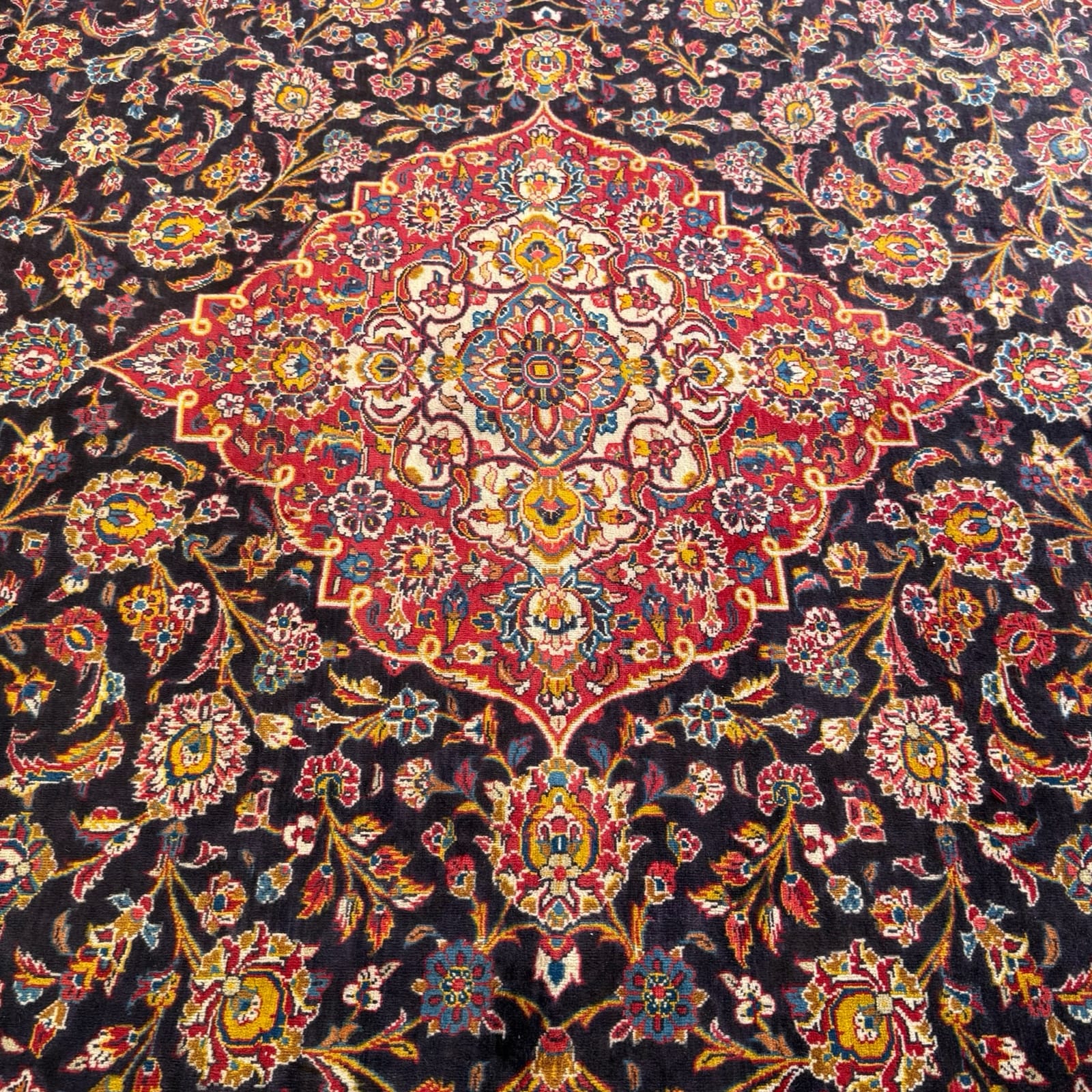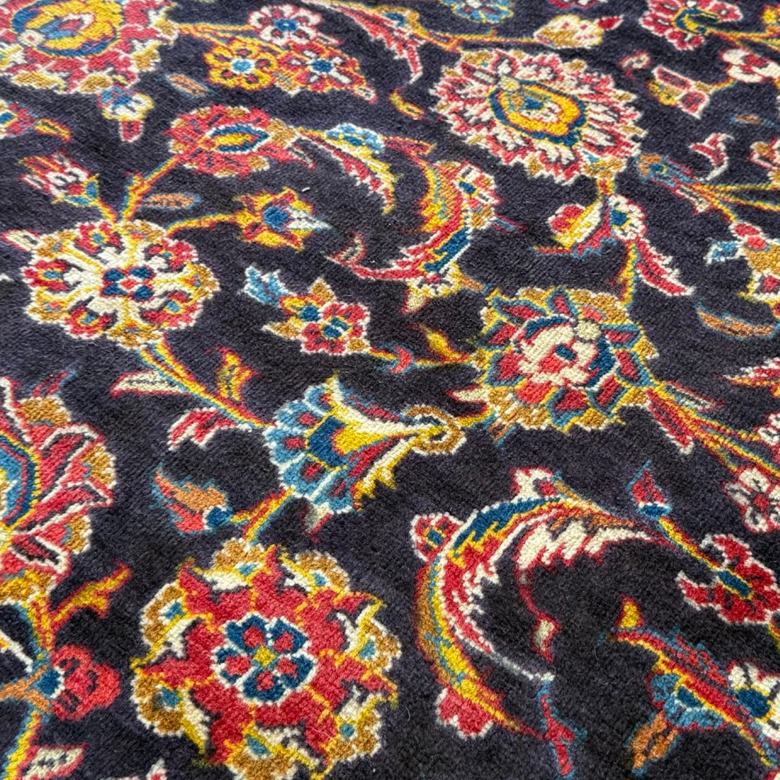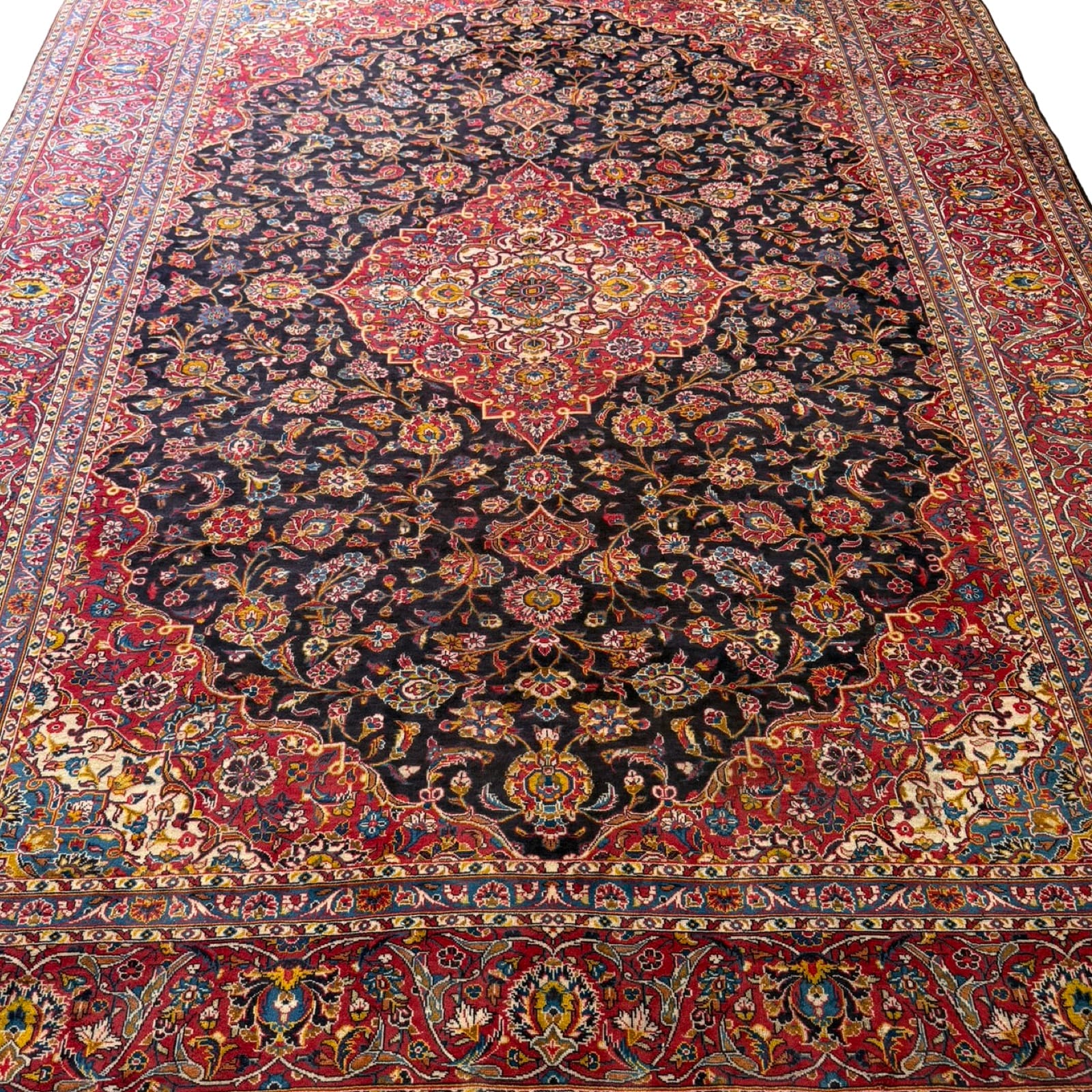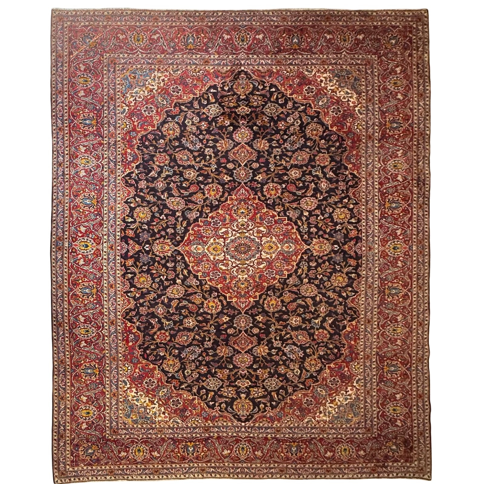 A Kashan rug is a high-quality Persian rug from the Kashan region in Iran, known for its intricate floral patterns and rich color palette, including deep reds, blues, and ivories. Made from fine wool, these rugs are durable, soft, and renowned for their beauty, making them a timeless addition to any home.