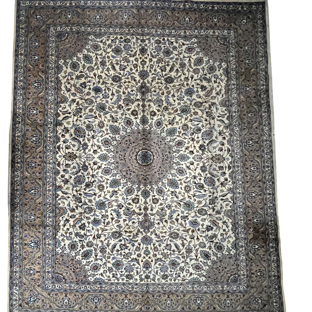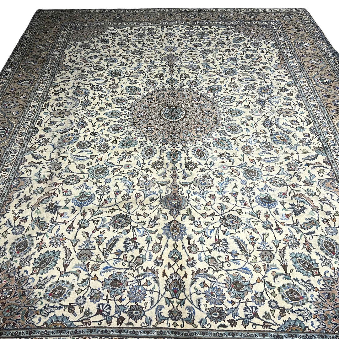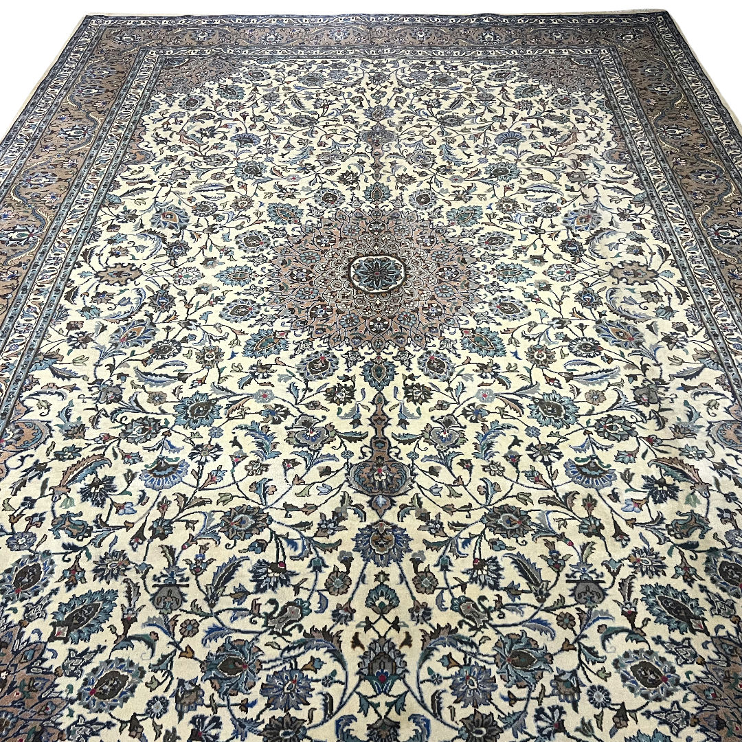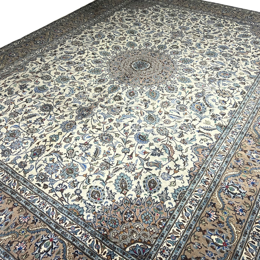 394cm x 294cm Hand-Knotted Floral Persian Kashan Cream Rug