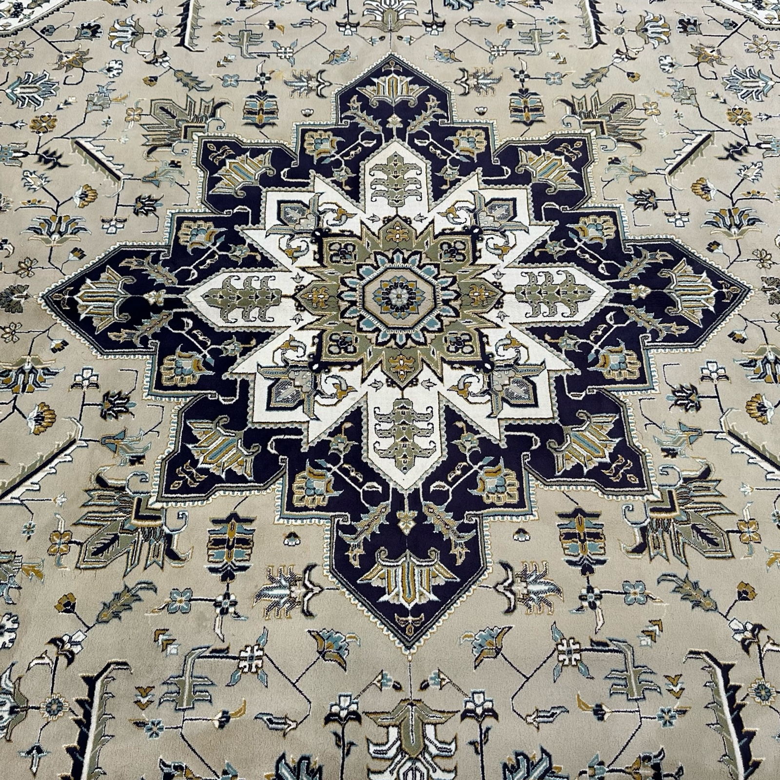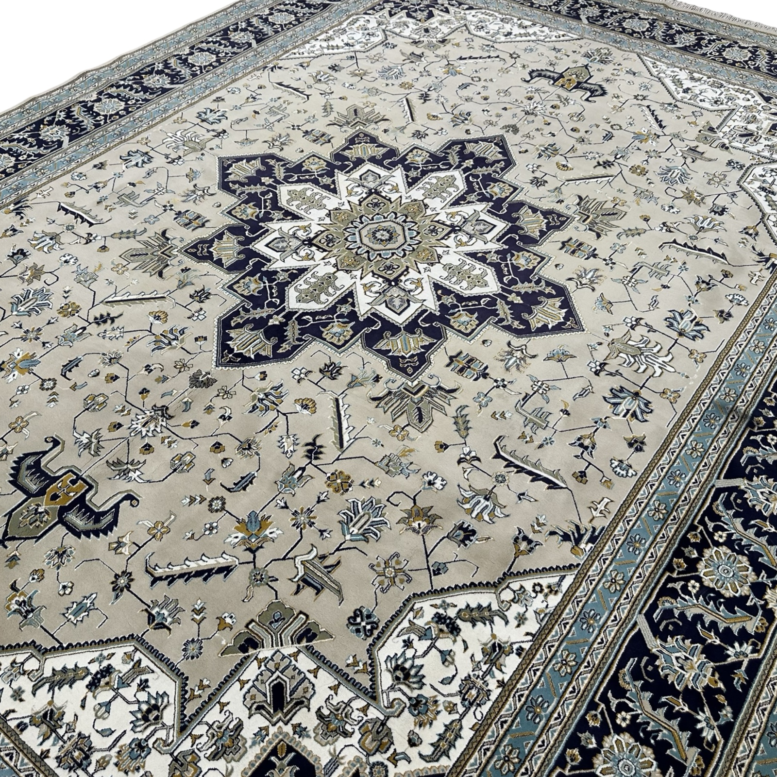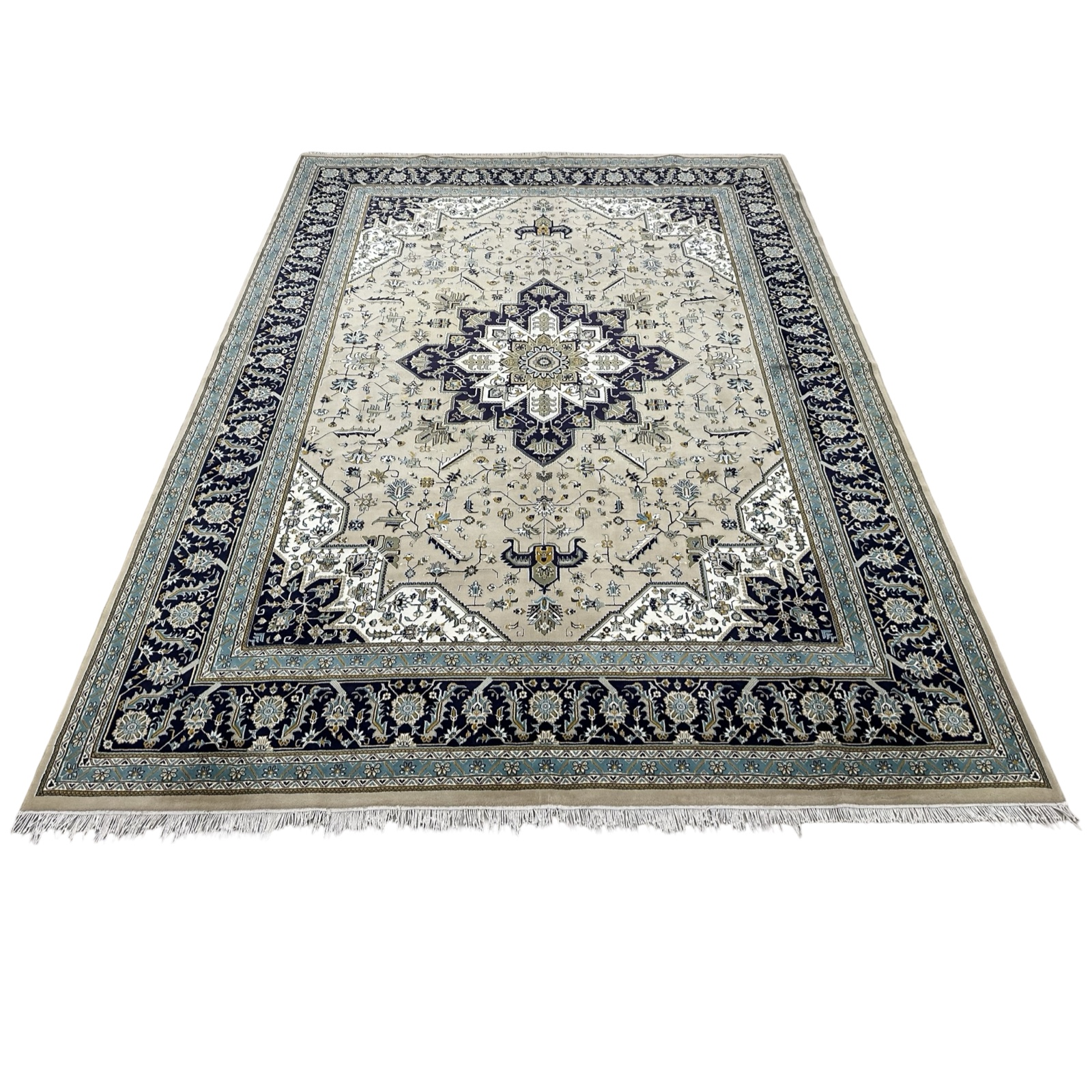 This rug is machine-made in Iran, featuring an elegant Persian medallion design inspired by classic Iranian patterns. It has a soft, comfortable pile and detailed motifs that bring a rich, traditional look to any space.