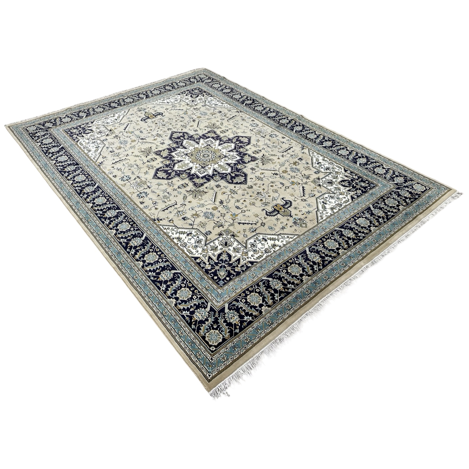 400 x 300cm Classic Shah Naghsh Medallion Design Green Rug
