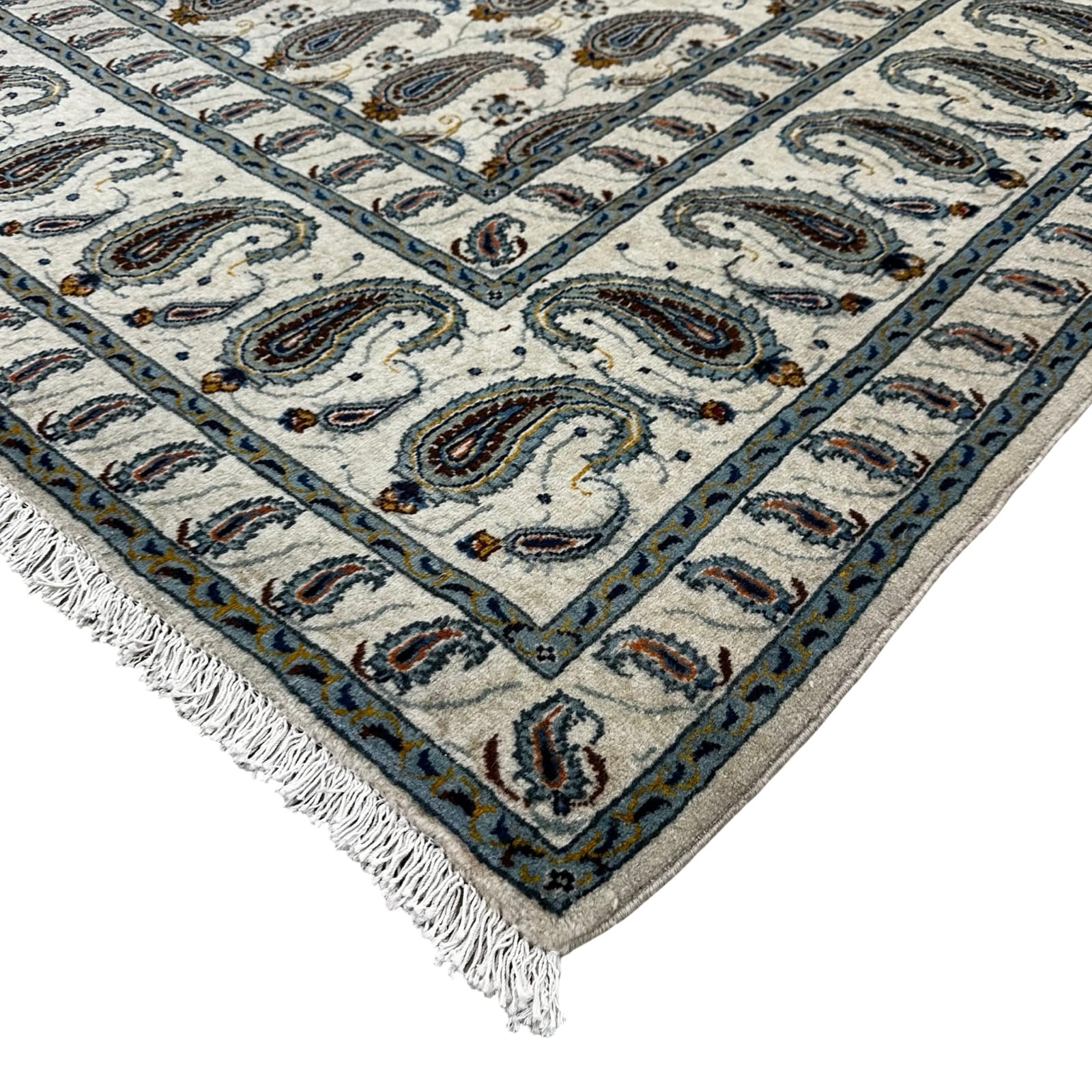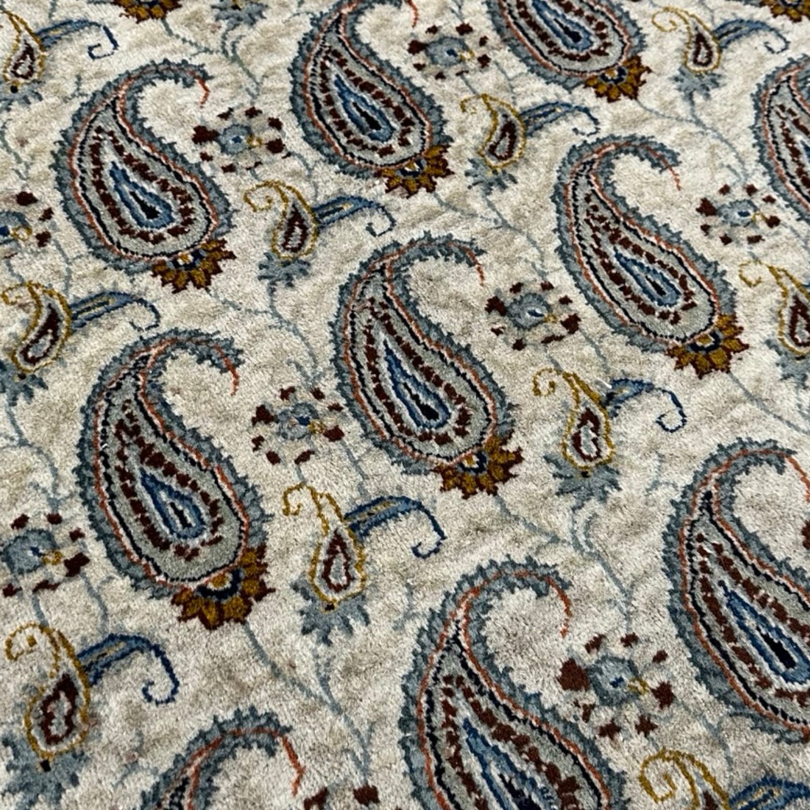 A refined Persian Kashan rug featuring a graceful all-over floral design on a soft Green/cream field. Kashan has long been one of Iran’s most respected weaving centers, known for elegant patterns, fine wool, and excellent knotting technique. This piece has a light, inviting look that works beautifully in classic and modern interiors.