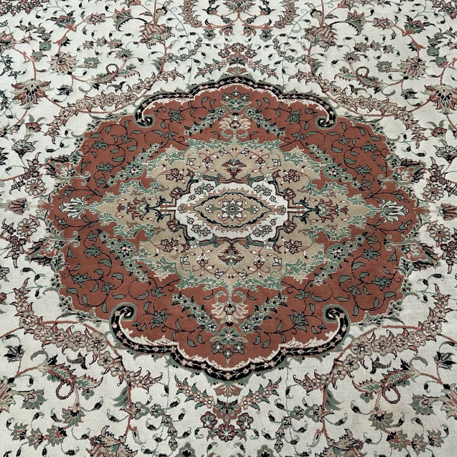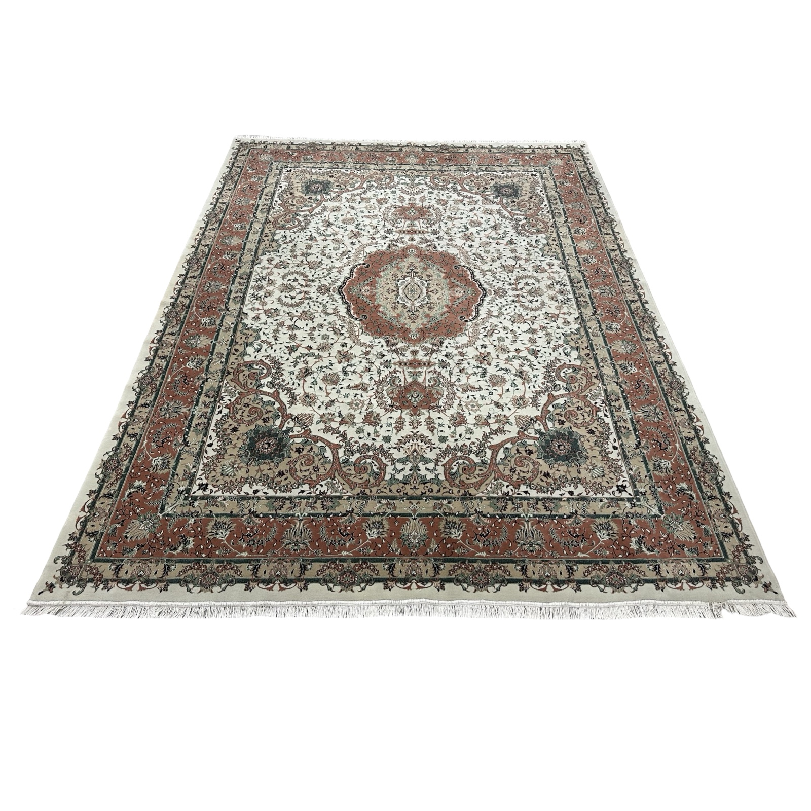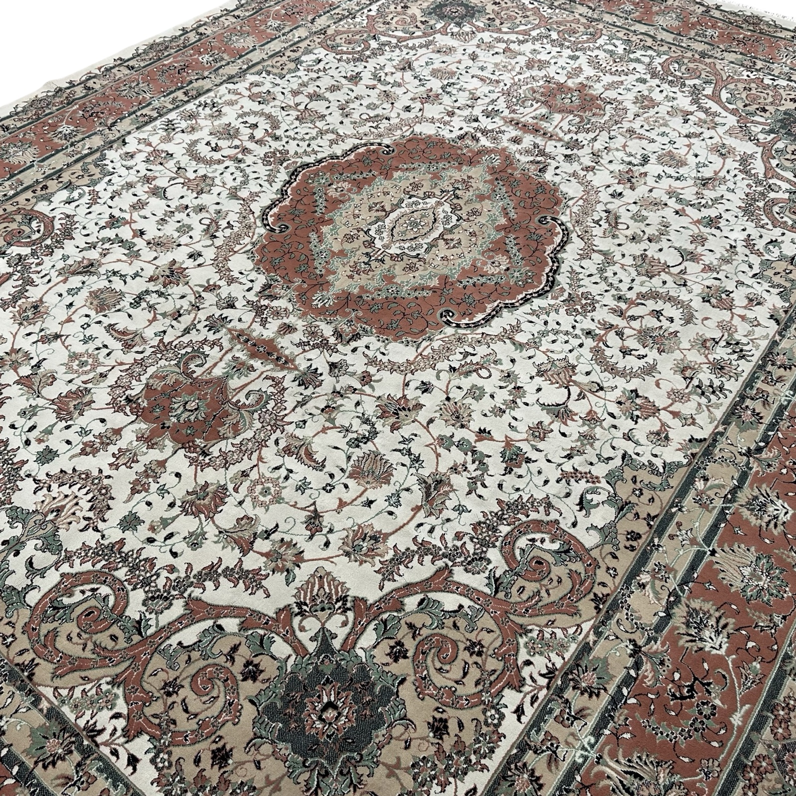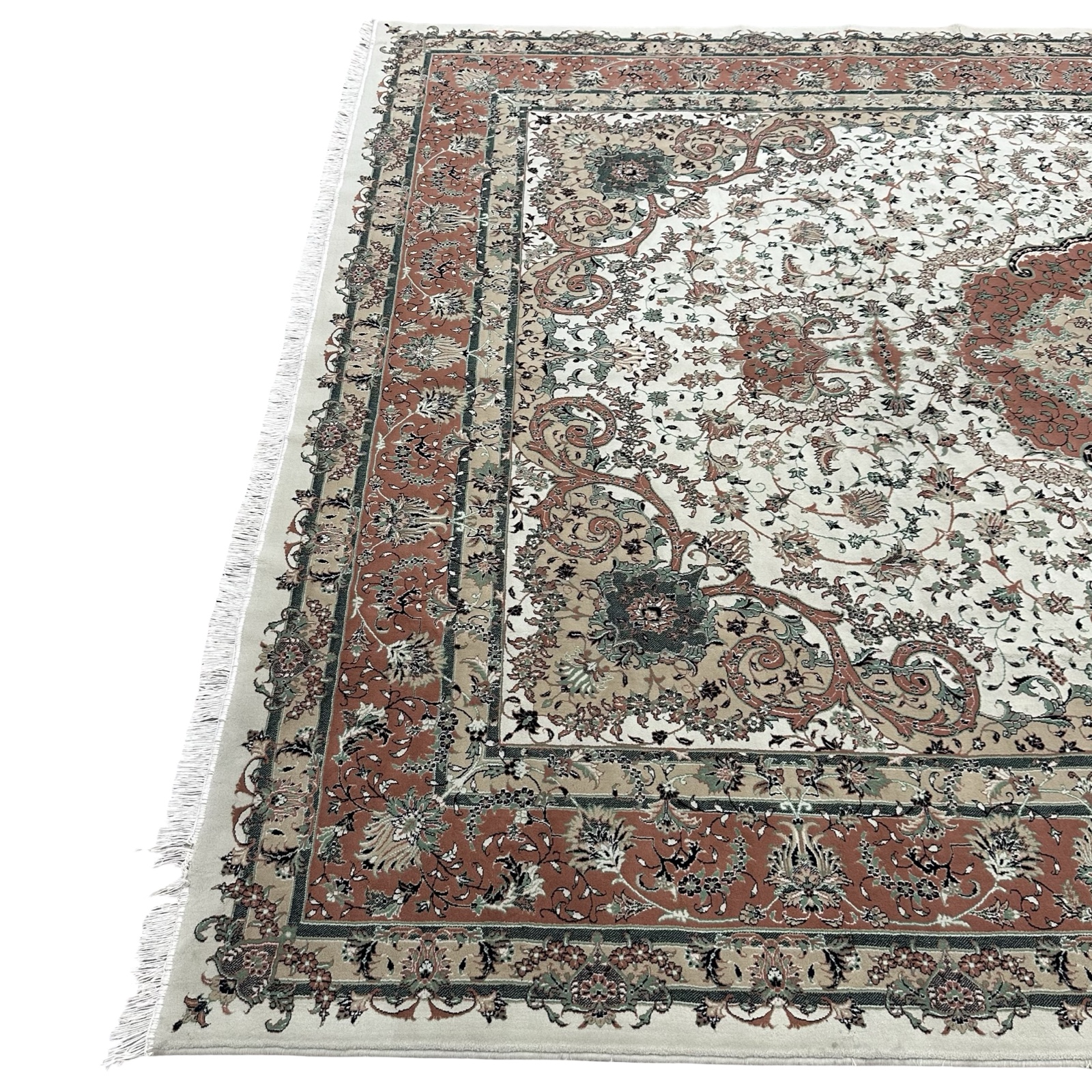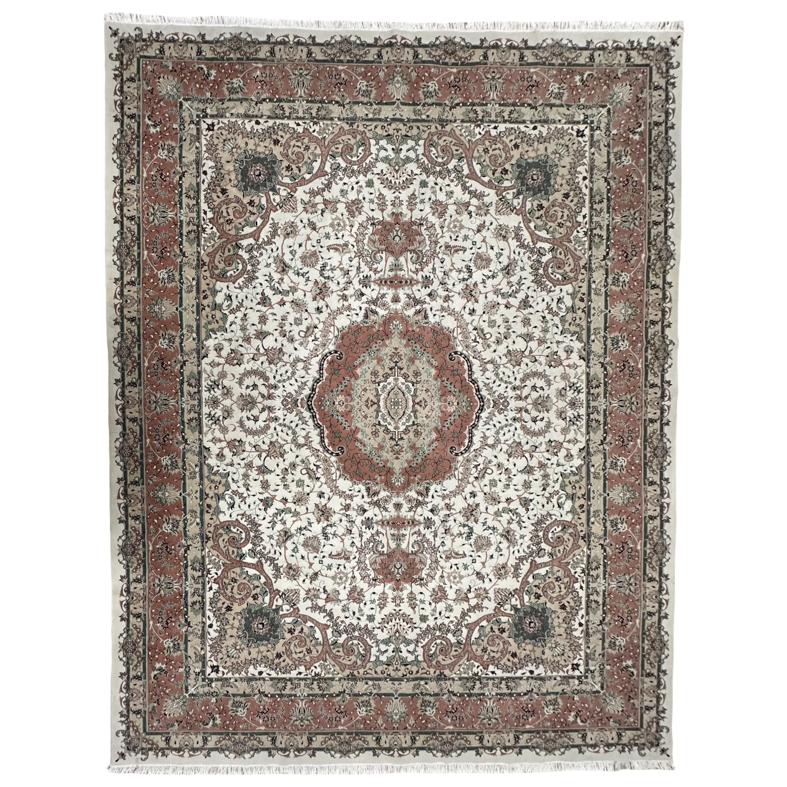 400 x 300cm Persian Kashan Medallion Design Cream Rug
