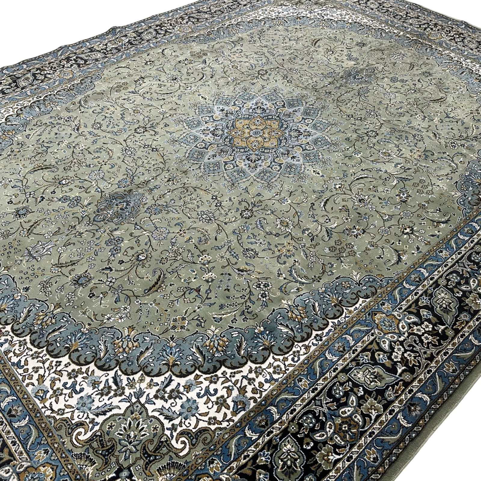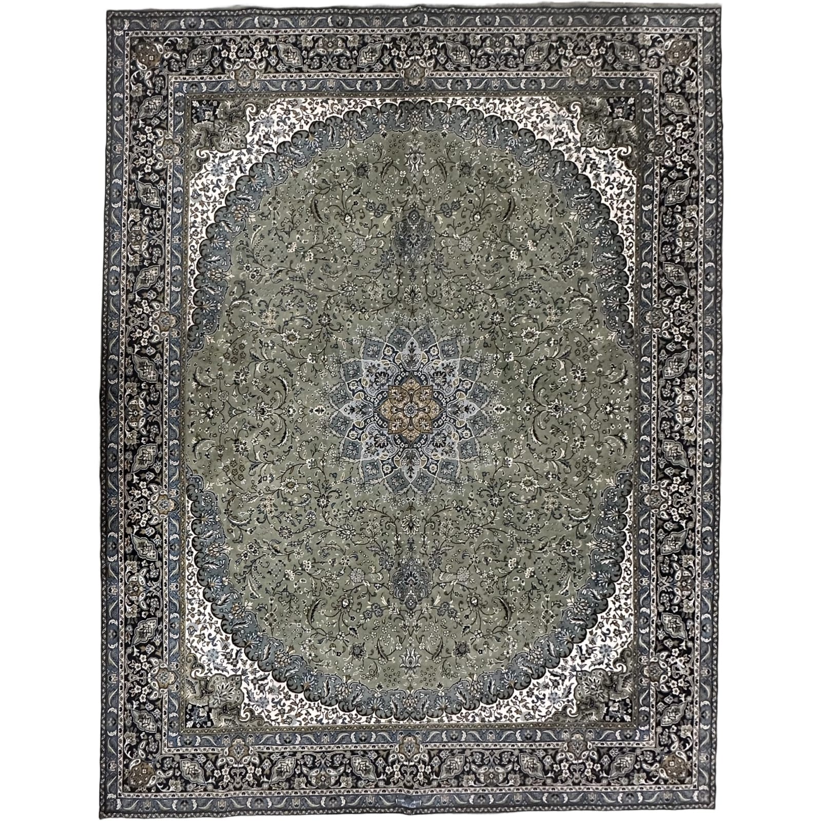 400 x 300cm Persian Tabriz Shah Abbasi Machine Made Olive Green Rug