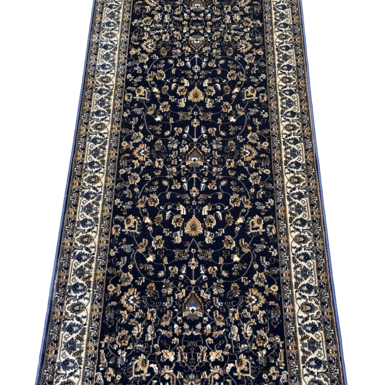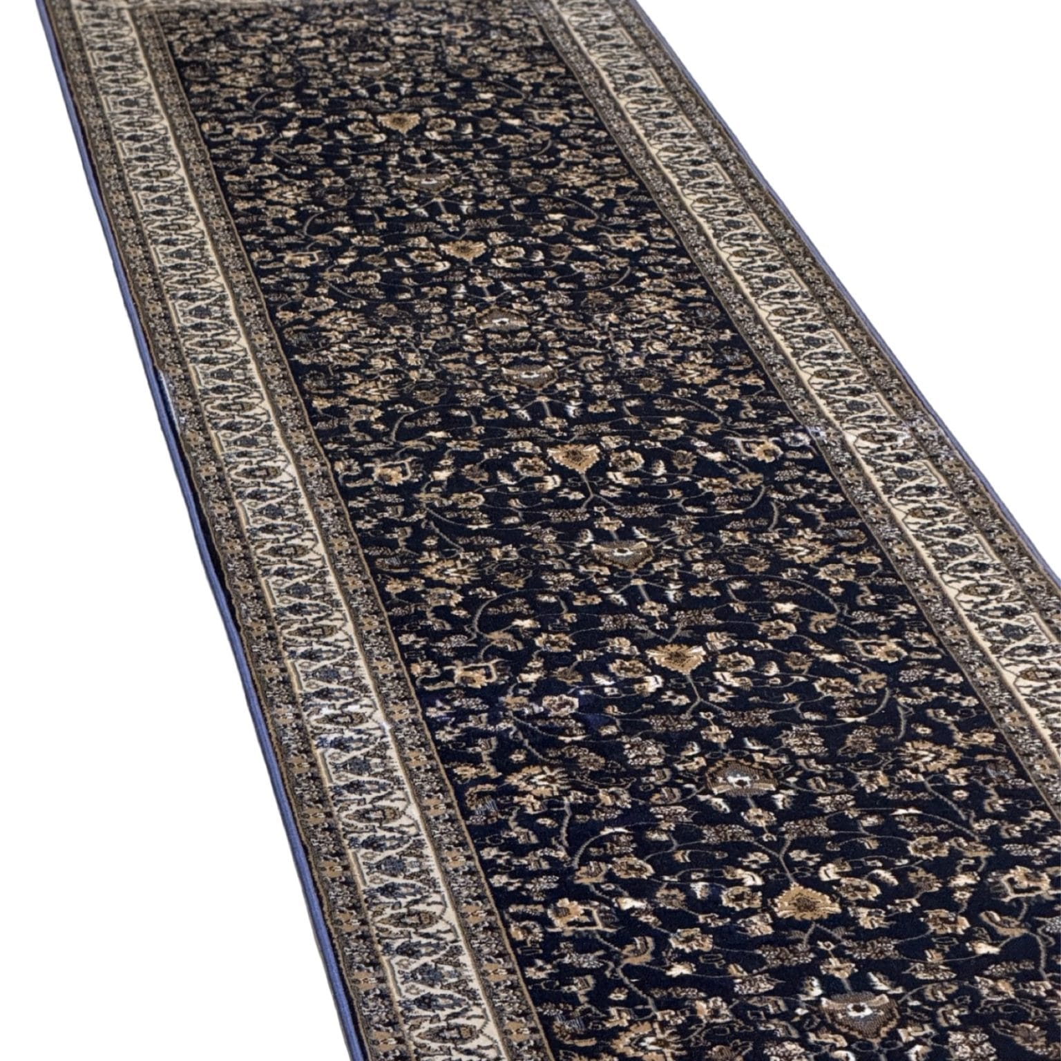 600 x 80cm All Over Floral Persian Kashan Design – Navy Runner Rug